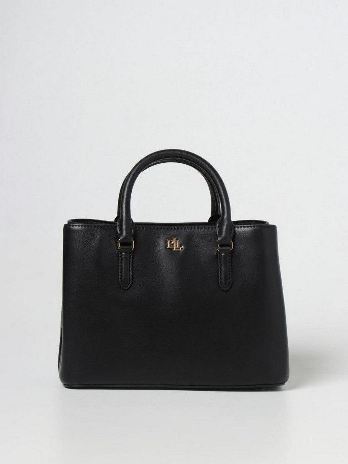 Borsa RALPH LAUREN in pelle con logo in metallo color oro. Due manici robusti e tracolla regolabile e removibile. Chiusura con gancio. All'interno tre scomparti di cui il centrale con chiusura zip.