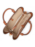 Borsa RALPH LAUREN in pelle con logo in metallo color oro. Due manici robusti e tracolla regolabile e removibile. Chiusura con gancio. All'interno tre scomparti di cui il centrale con chiusura zip.