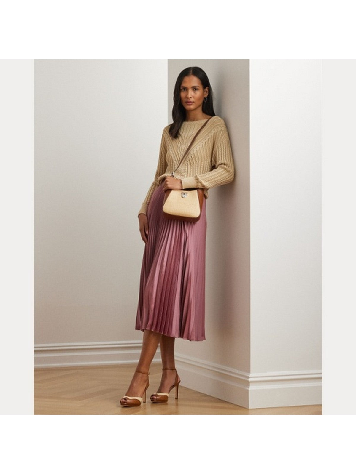 Borsa LAUREN RALPH LAUREN realizzata con una combinazione di rafia intrecciata e morbida pelle pieno fiore dalla finitura naturalmente liscia