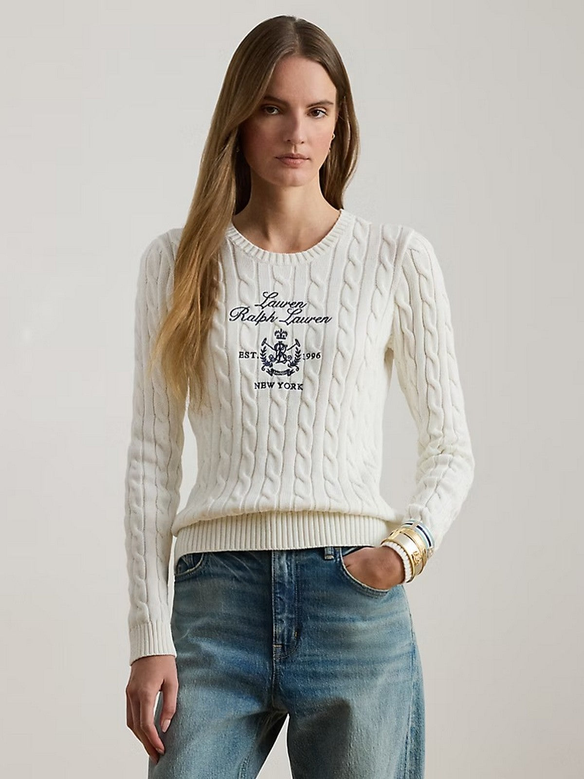 Maglia a trecce LAUREN RALPH LAUREN con stemma ricamato