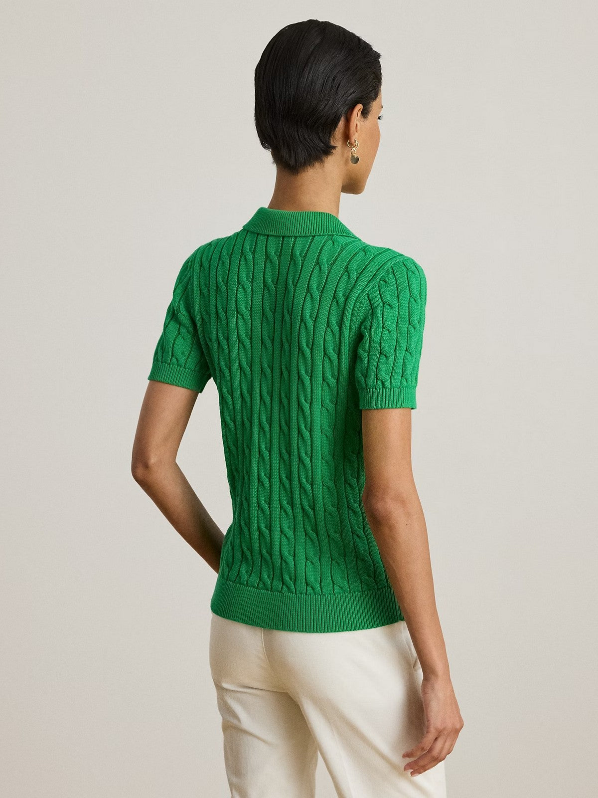 Questo capo in morbido cotone pettinato coniuga l'intramontabile silhouette di una polo al comfort di una classica maglia a trecce. Inoltre, presenta l'esclusivo logo Lauren ricamato e bottoni con incisione "LRL".