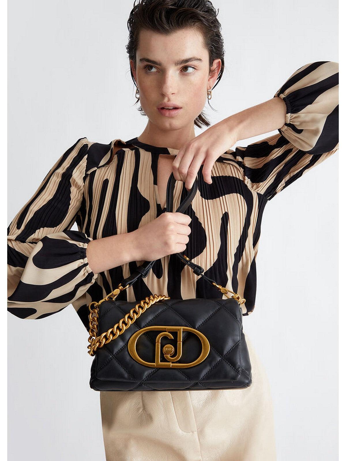 Borsa tracolla LIU JO realizzata in similpelle, effetto nappa trapuntata. Comodo manico a catena ed in similpelle entrambi removibili. Lettering LJ in metallo sul davanti. Chiusura con patta e bottone automatico. Tasca interna con zip