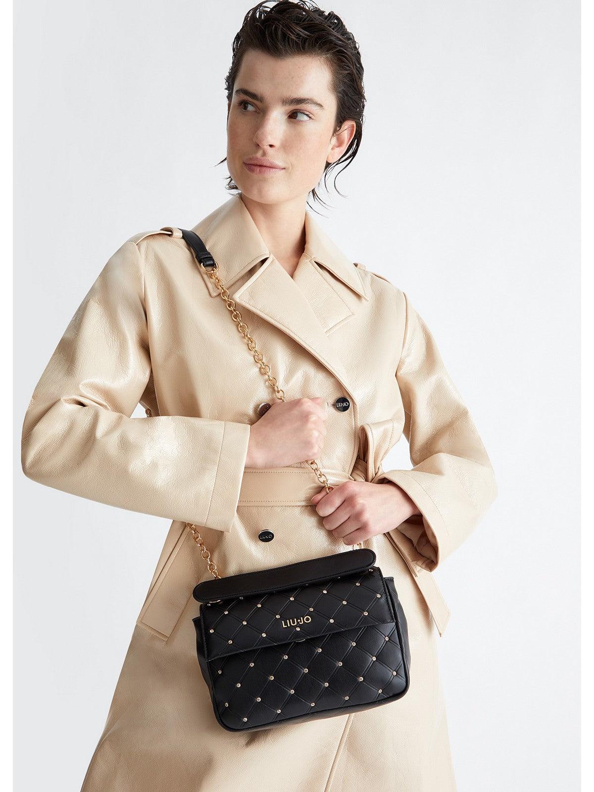 Borsa tracolla LIU JO ecosostenibile realizzata in PU effetto nappa trapuntata con strass applicati.