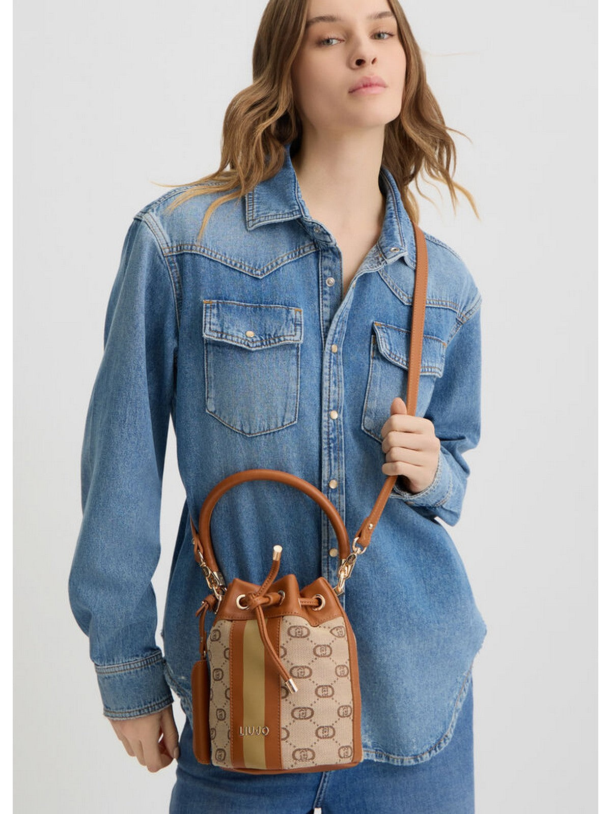 Borsa a secchiello LIU JO in tessuto jacquard con dettagli in PU