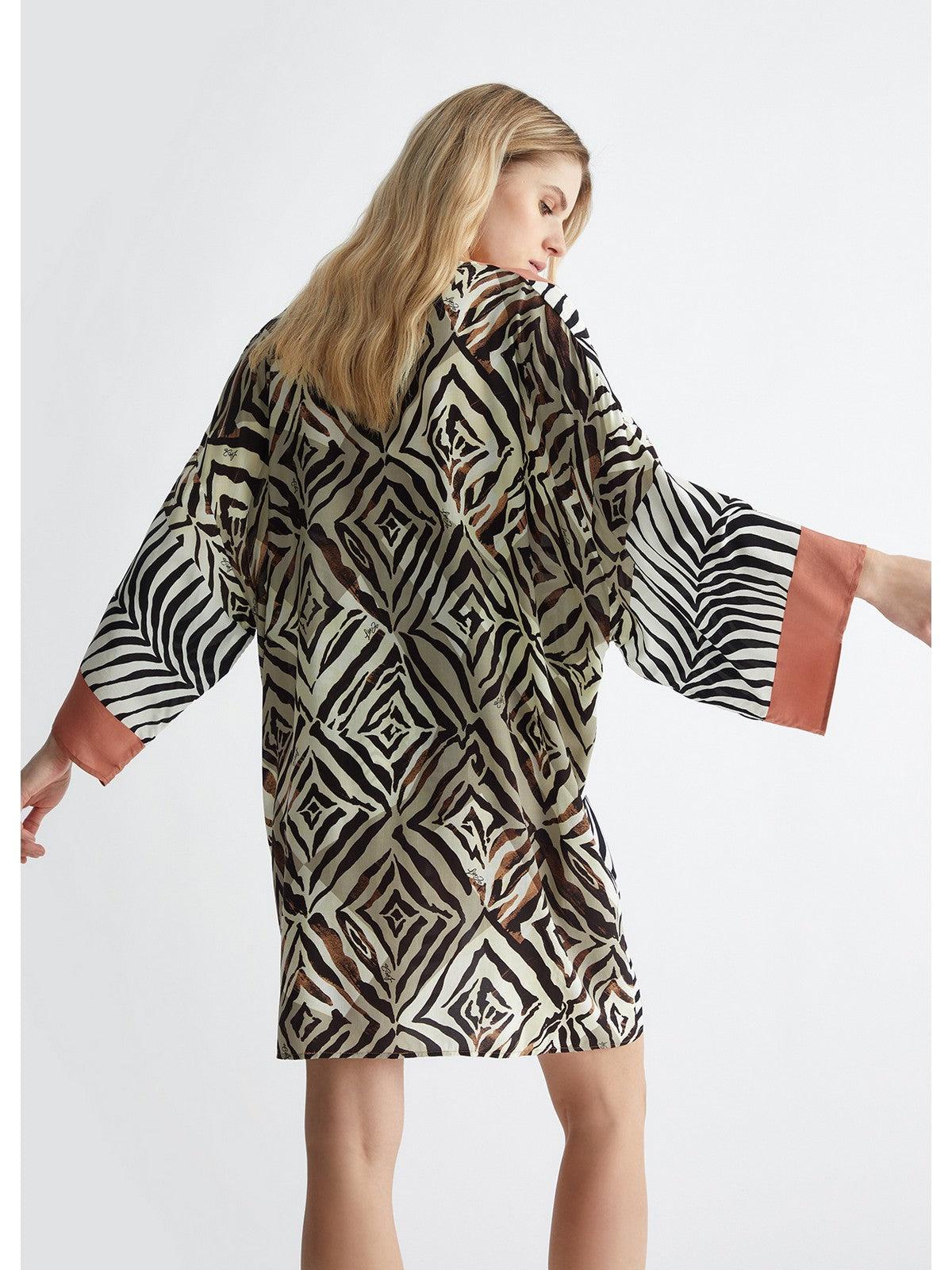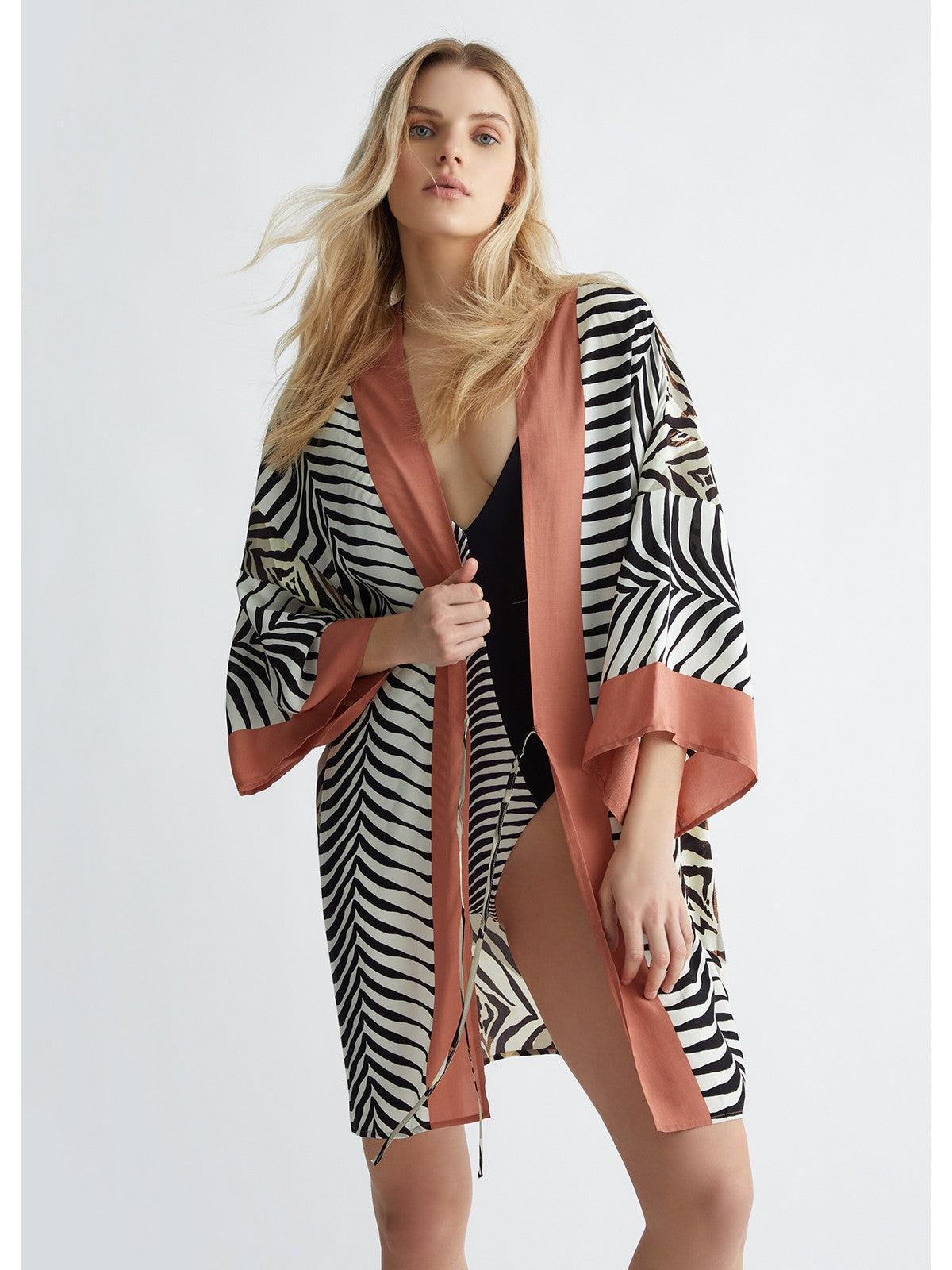 Kimono LIU JO BEACHWEAR da mare in viscosa. Stampa a righe animalier all over con dettagli dal colore a contrasto.