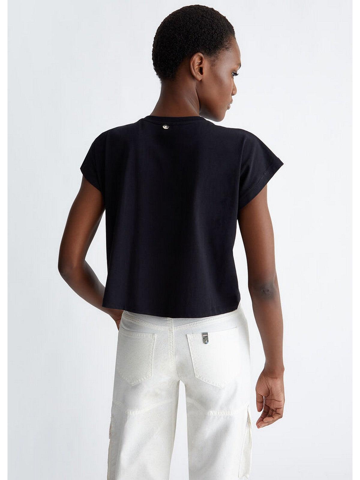 T-shirt LIU JO in jersey di cotone stretch. Ricami gioiello motivo geometrico sul fronte. Taglio girocollo e maniche corte.