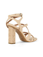 Sandalo LIU JO realizzato con tomaia in ecopelle. Motivo pitone colore nude. Chiusura con cinturino e fibbia alla caviglia. Tacco quadrato, logato, alto 9 cm.