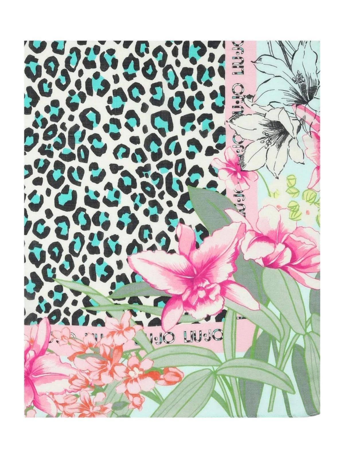 Foulard LIU JO in tessuto con fibre di bamboo. Stampa floreale animalier con logo.