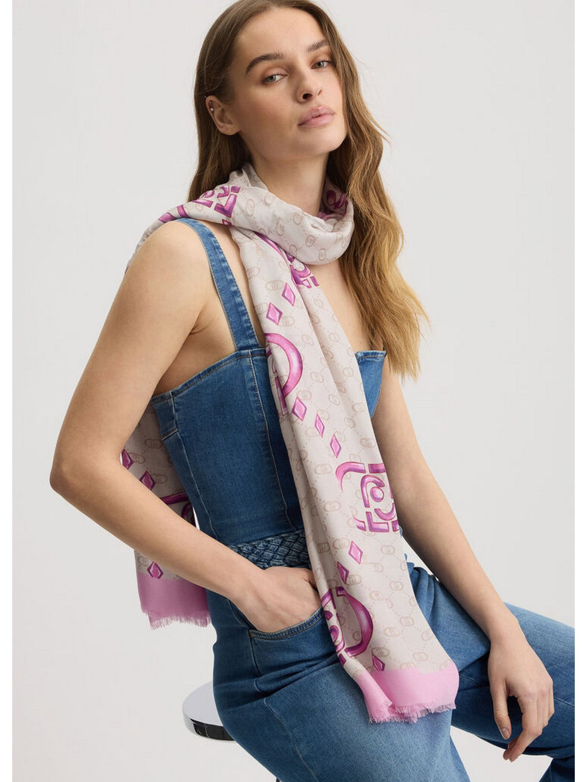 Stola LIU JO con logo rosa, realizzata in materiale di alta qualità