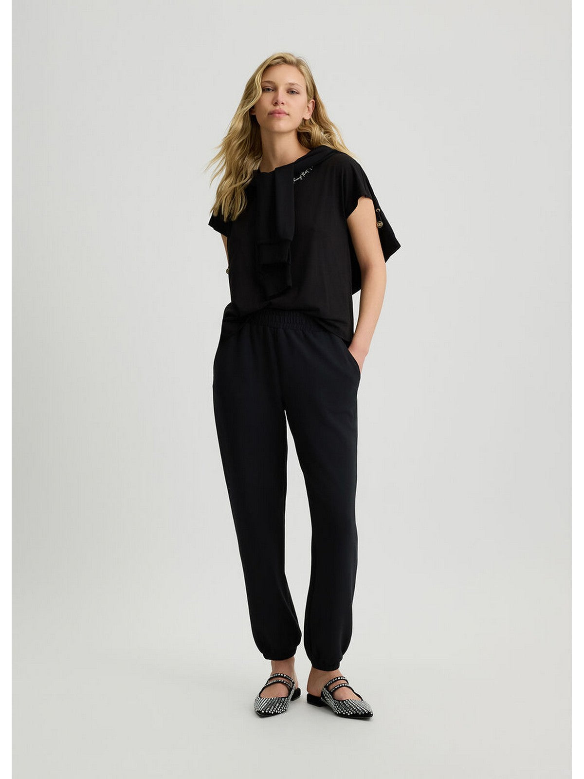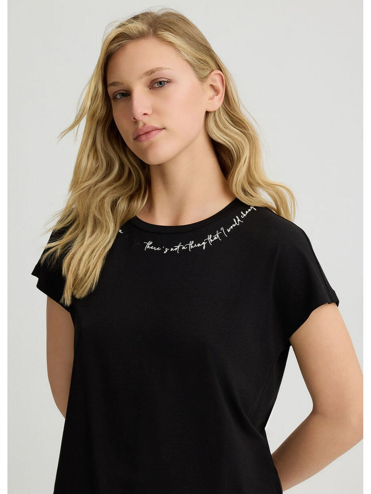 ? Stampa lettering con logo e strass sul davanti