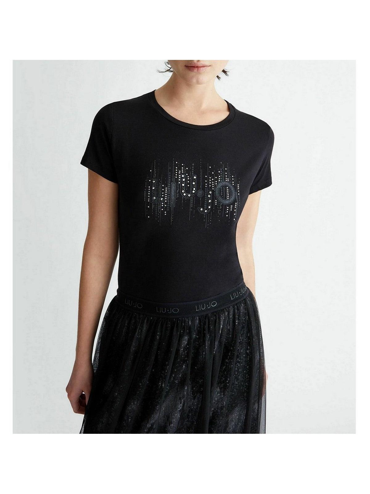 T-shirt LIU JO in cotone. Stampa logo sul fronte con strass applicati. Collo a giro e maniche corte.