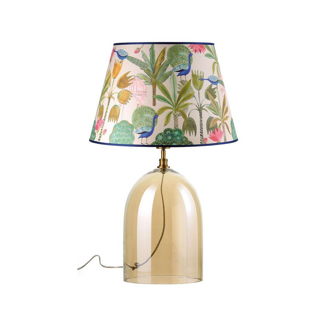 Base lampada da tavolo in vetro ambra. Abbinabile a tutti i paralumi conici Ø45x30h e cilindrici Ø40x30h. Disponibile anche in verde.