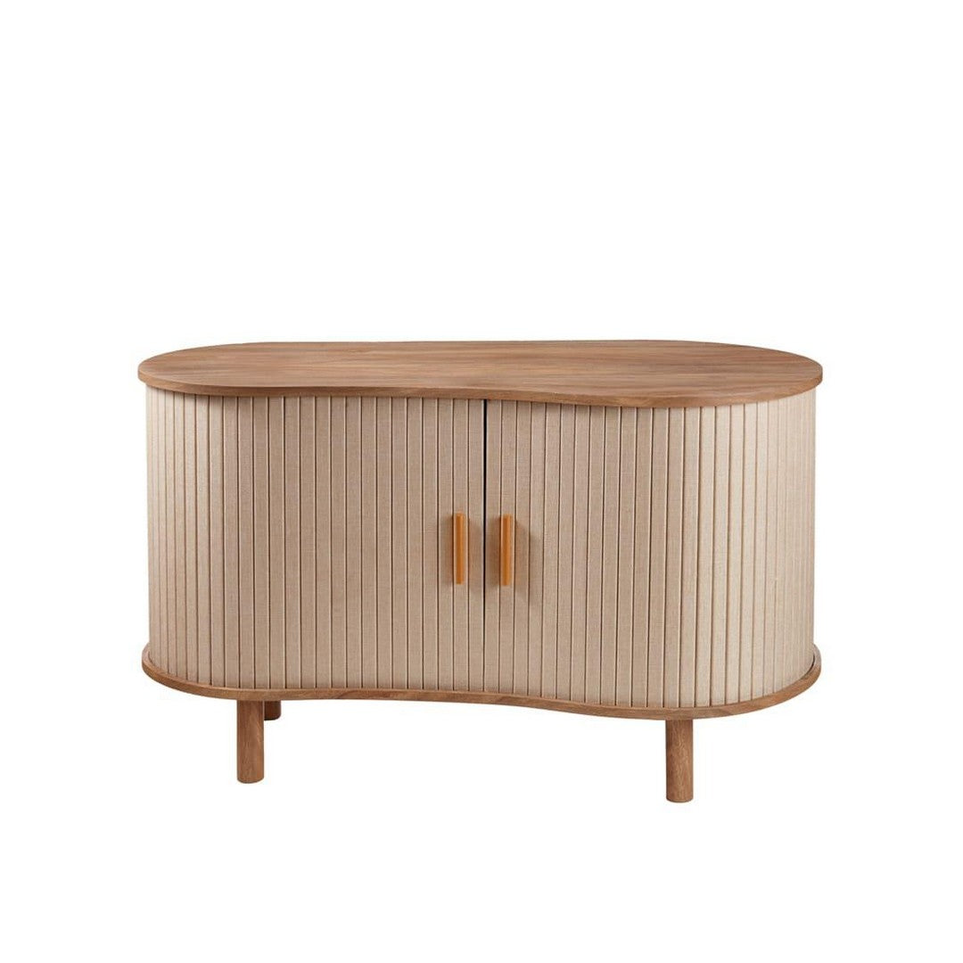 Mobile due ante scorrevoli dal design moderno. Con struttura e piano in finitura legno e ante rivestite in tessuto, è l'ideale per arredare un ambiente dall'atmosfera armoniosa e rilassante. Da abbinare al mobile basso due ante scorrevoli coordinato dell'ispirazione Neo classic per un arredo in cui i complementi dialogano perfettamente tra loro.