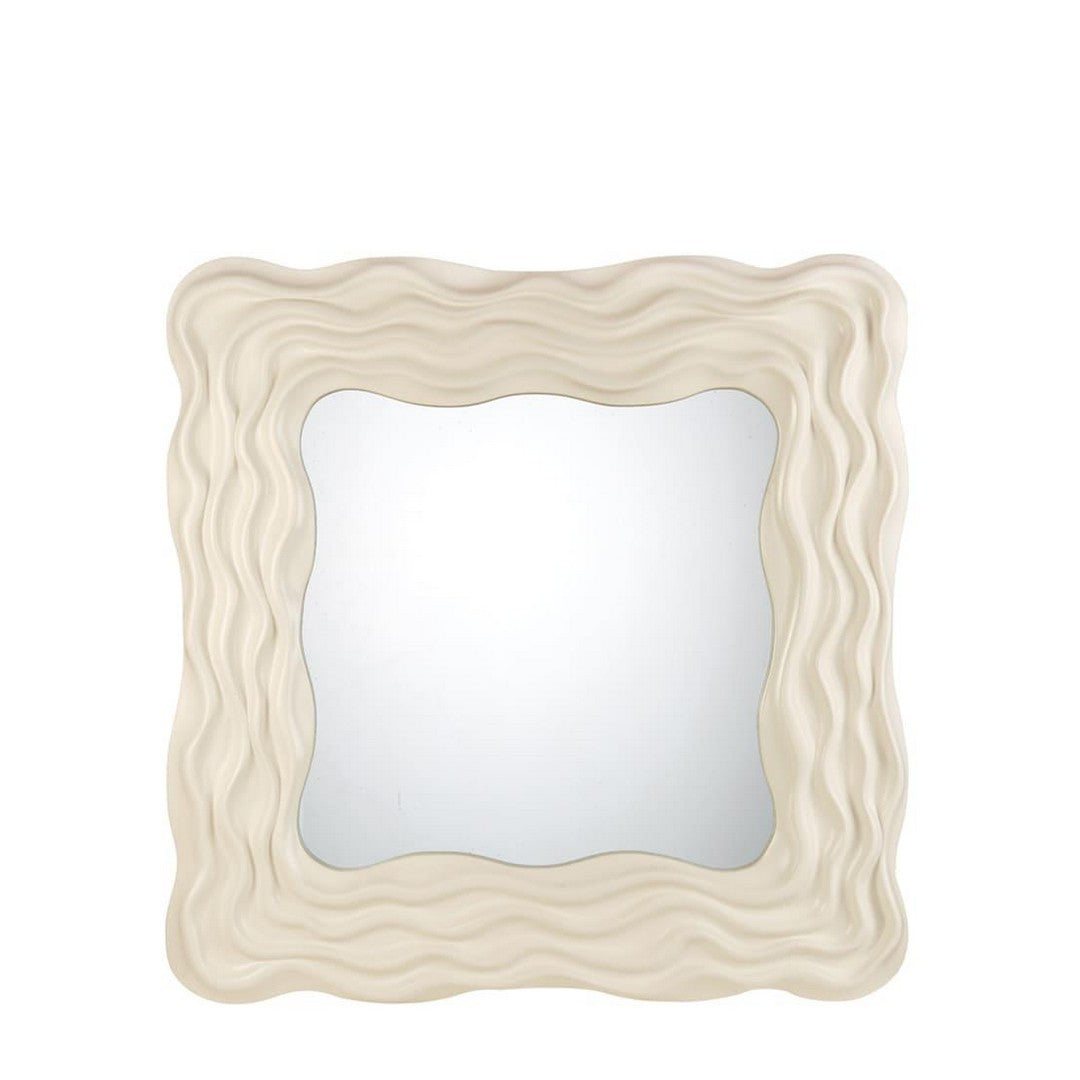 Specchiera quadrata con cornice in resina. Un moderno effetto materico in rilievo la rende il dettaglio ricercato di un amante del design iconico per un living elegante e accogliente.