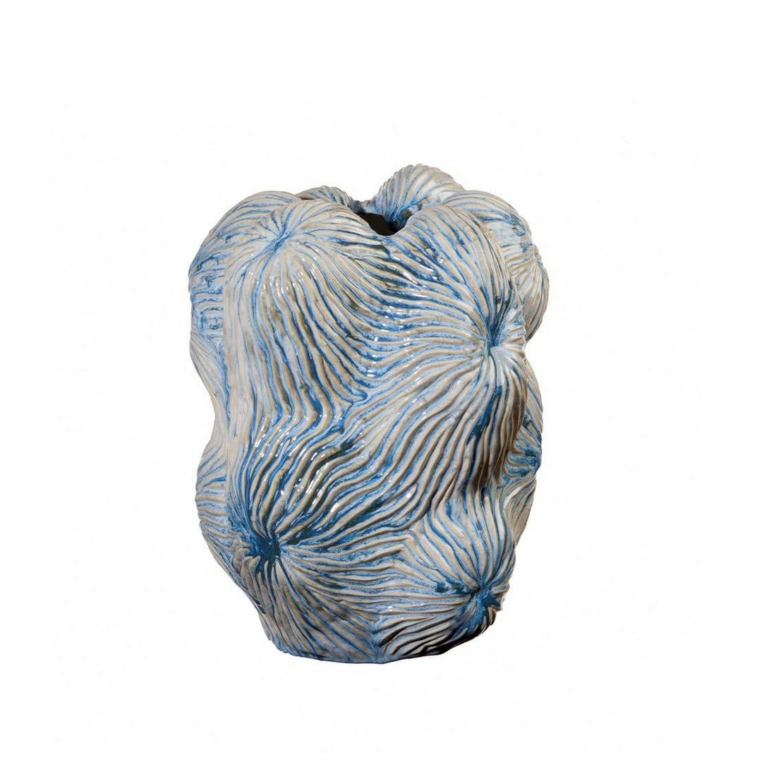 Vaso alto in gres. La forma si ispira ai fondali marini, per un dettaglio di design moderno e ricercato. Ideale da abbinare al vaso basso coordinato dell'ispirazione Orizzonti per un angolo floreale dallo stile non convenzionale.