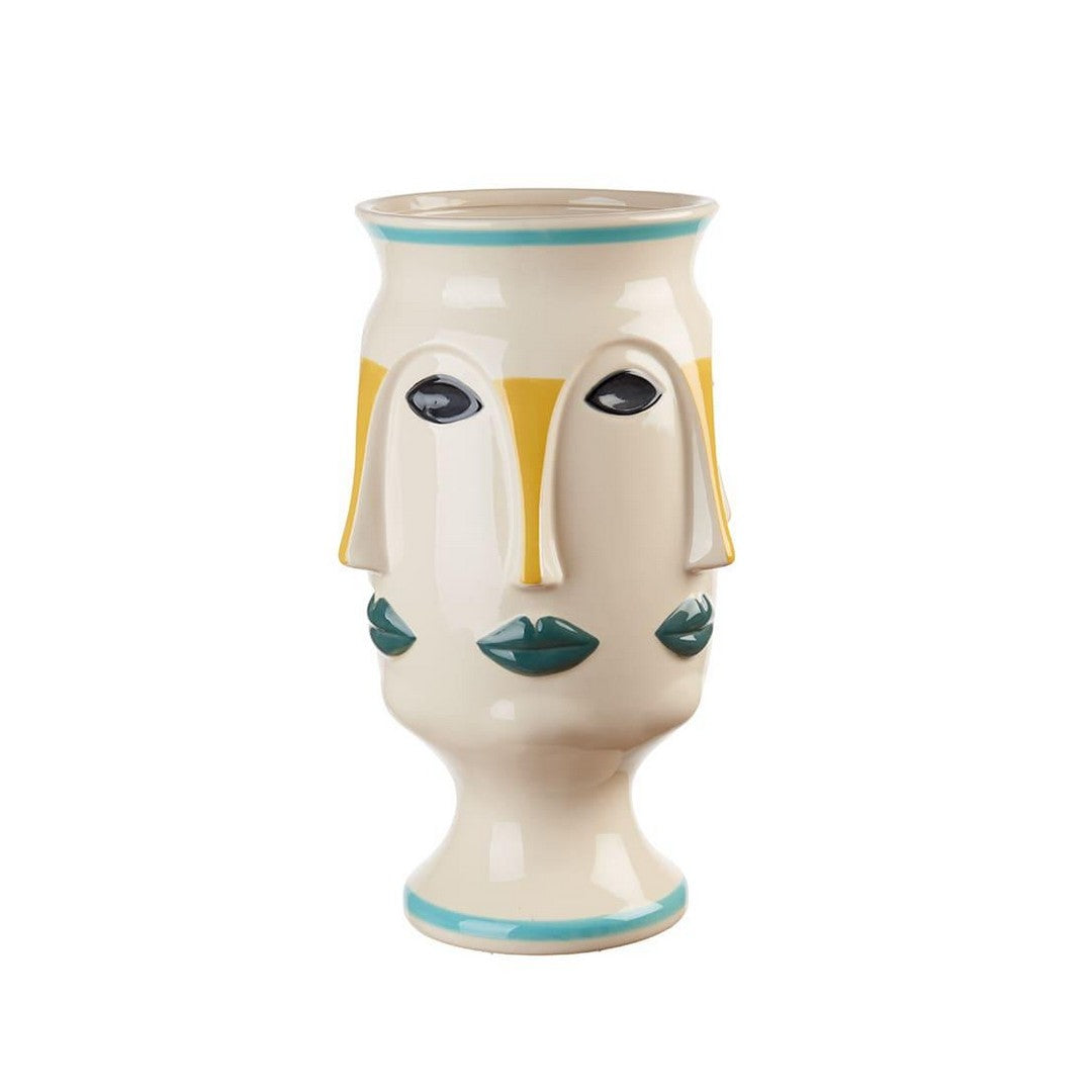 Vaso alto in gres. La forma si ispira ai vasi con volti dell'arte antica mediterranea, per un dettaglio di design ricercato. Ideale da abbinare al vaso basso coordinato dell'ispirazione Orizzonti.