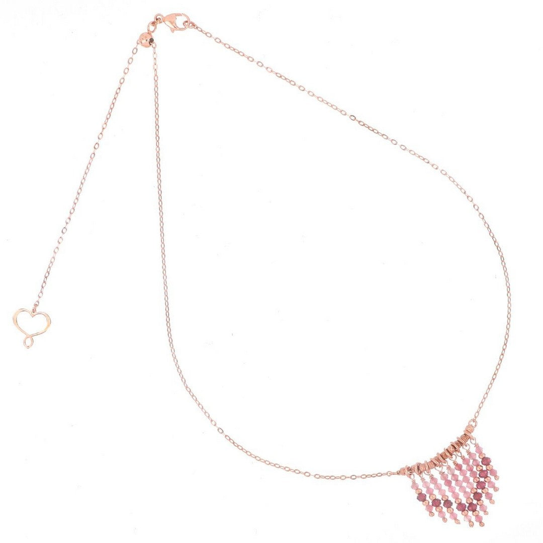 Girocollo realizzato in argento 925 con galvanica oro rosa ad alto spessore e resistenza con cascata centrale di pietre di Tormalina rosa e Granato rosso.