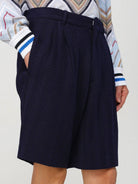 Questo bermuda Missoni combina l'eleganza della costruzione sartoriale con la leggerezza dei materiali pregiati. Il tessuto in misto cotone e viscosa, impreziosito da un motivo zig zag, conferisce al capo una raffinatezza contemporanea, perfetta per un look estivo fresco ma ricercato.
