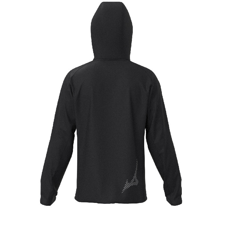Micro Giacca Mizuno con cappuccio da uomo. Giacca da running Mizuno in tessuto esterno leggero con fodera interna in rete, due tasche laterali con cerniera. Salbini articoli tecnici per lo sport è rivenditore Mizuno .