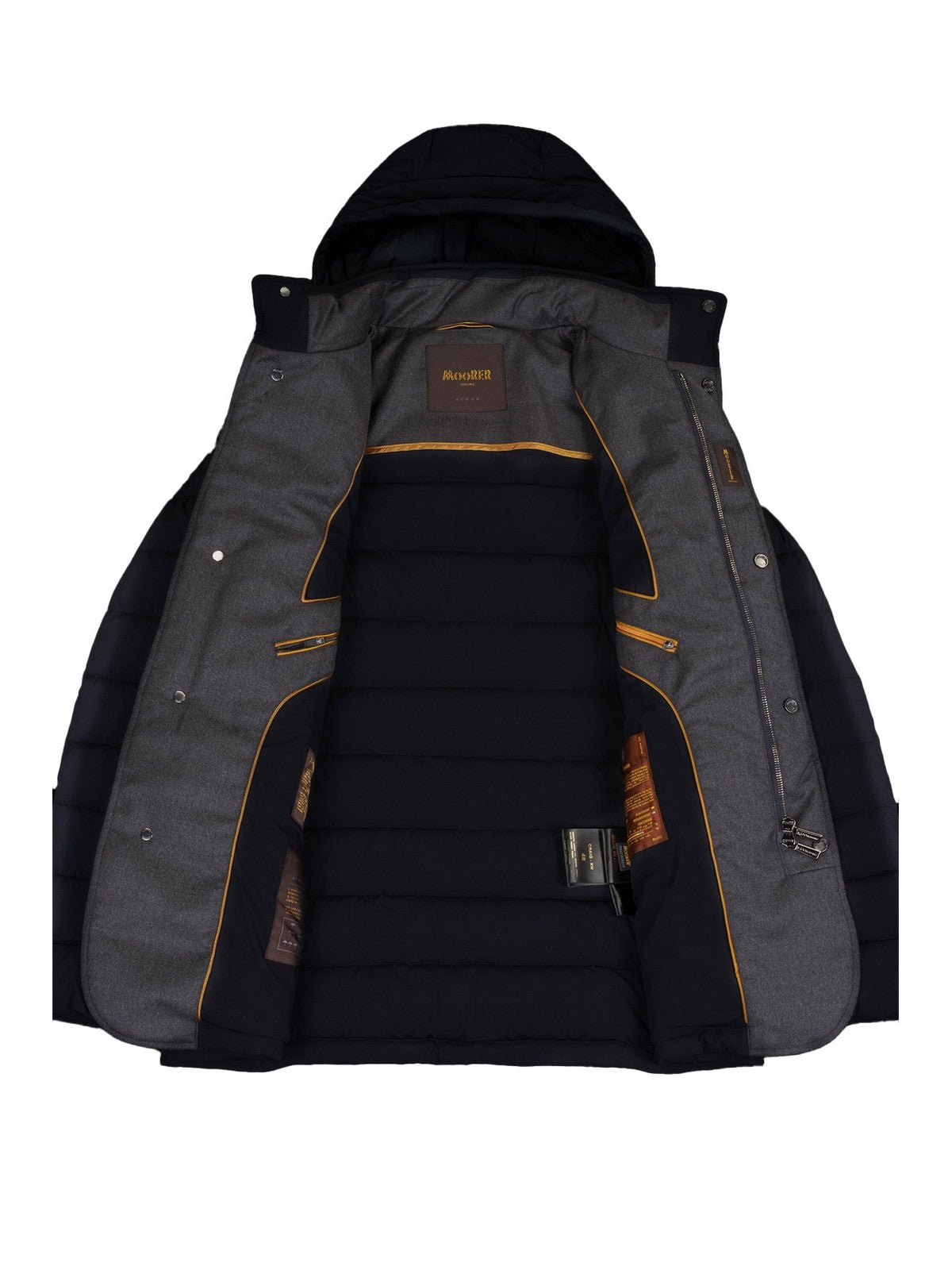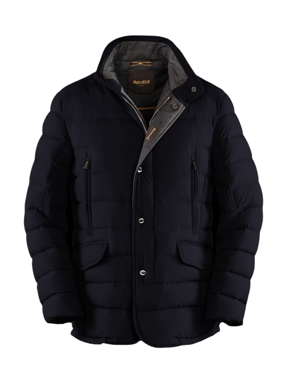 Giubbino MOORER realizzata in tessuto bielastico resinato idrorepellente, molto compatto e resistente alla trazione.