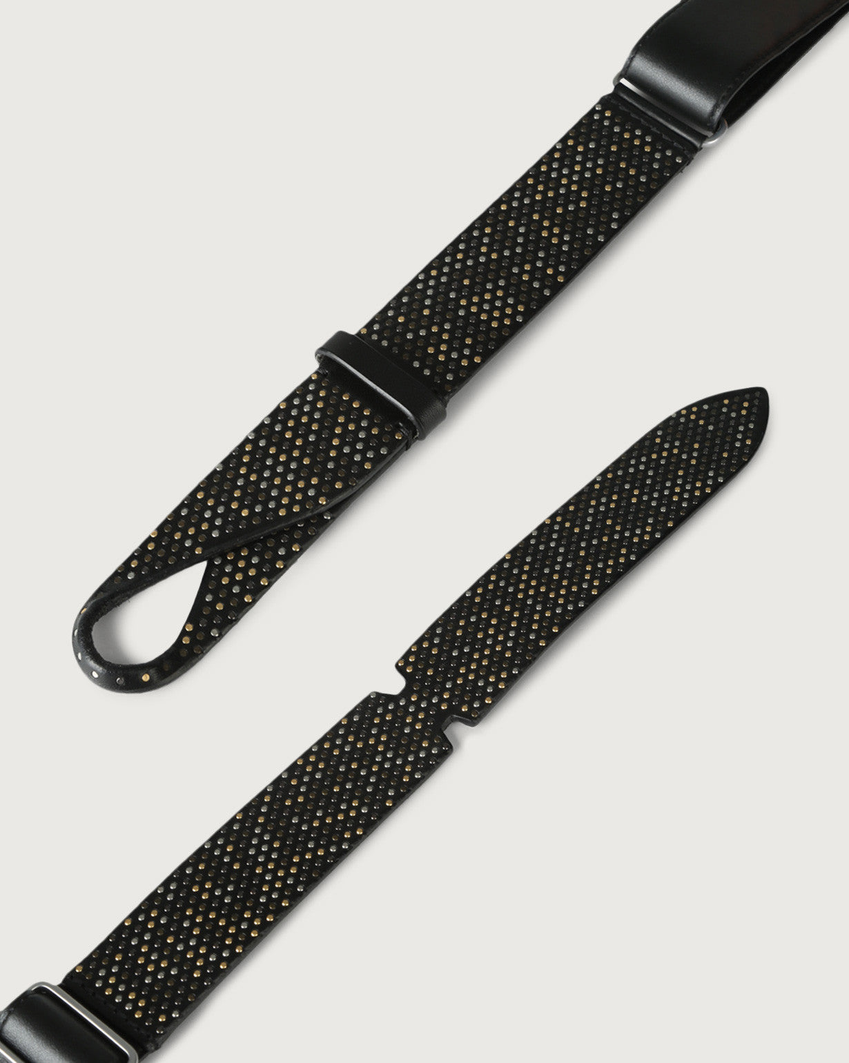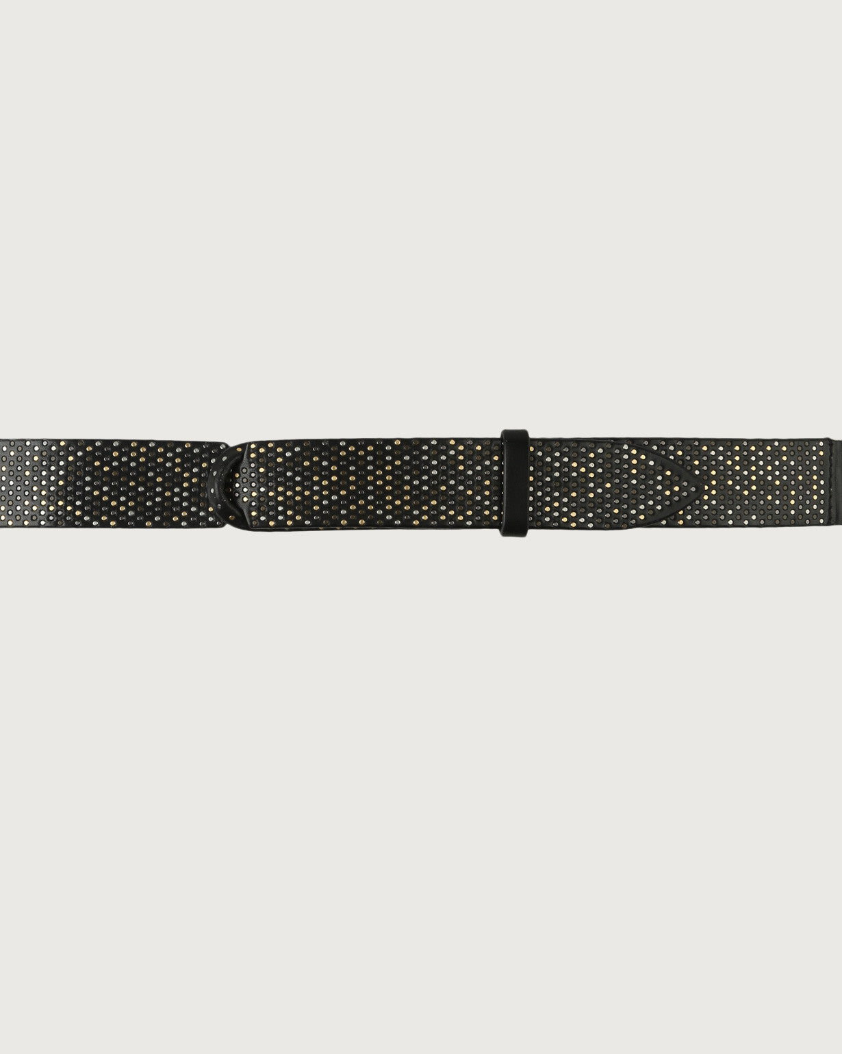 Cintura ORCIANI cintura in cuoio con micro-borchie finitura multigalvanica. Senza fibbia, perfetta da abbinare ad ogni outfit.
