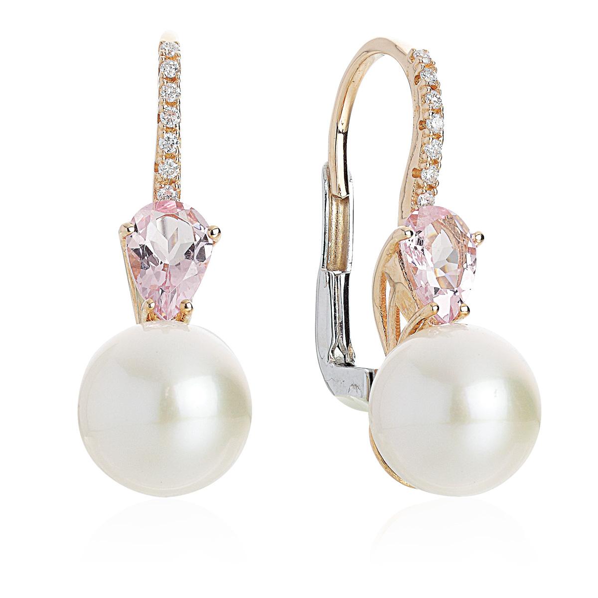 Orecchini monachella in oro 18kt, con Perla di mare, Morganite e diamanti.