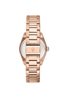 OROLOGIO MASERATI VELOCITA' ? R8853152501 ? Genere: Donna, Materiale e finitura cassa: Acciaio, Misura cassa: 35.00mm, Spessore cassa: 9.00mm, Finitura cassa: Lucido, Colore cassa: Oro rosa, Vetro: Vetro minerale, Materiale cinturino: Acciaio, Colore cinturino: Oro rosa, Chiusura: Fibbia deployante con pulsanti, Movimento: Quarzo, Water resistant: 5 atm, Garanzia: Ufficiale 2 anni Maserati, Confezione: Originale Maserati