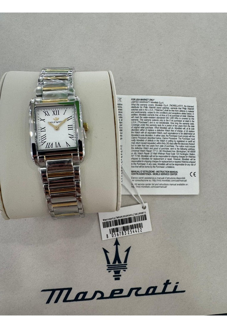 OROLOGIO PHILIP WATCH MUSEUM - R8253225501 - Genere : Donna, Materiale e finitura cassa: Acciaio, Misura cassa: 24.70x34.10mm, Spessore cassa: 7.50mm, Finitura cassa: Lucido, Colore cassa: Silver, Vetro: Vetro zaffiro, Materiale cinturino: Acciaio, Colore cinturino: Oro, Silver, Chiusura: Fibbia farfalla con pulsanti, Swiss made: Sì, Water resistant: 3 atm, Garanzia: Ufficiale 2 anni Philip Watch, Confezione: Originale Philip Watch
