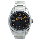 Orologio solo tempo da Uomo EBERHARD della collezione Scientigraf con movimento meccanico automatico Swiss Made, cassa in acciaio inox 41 mm, quadrante analogico nero opaco arricchito da una finitura "galbé", indici e lancette con luminescenza di colore arancio, corona a vite in acciaio e personalizzata, vetro zaffiro scavato e bombato antigraffio e antiriflesso e fondello serrato a vite e personalizzato con il disegno del 1961 ispirato ai campi magnetici.