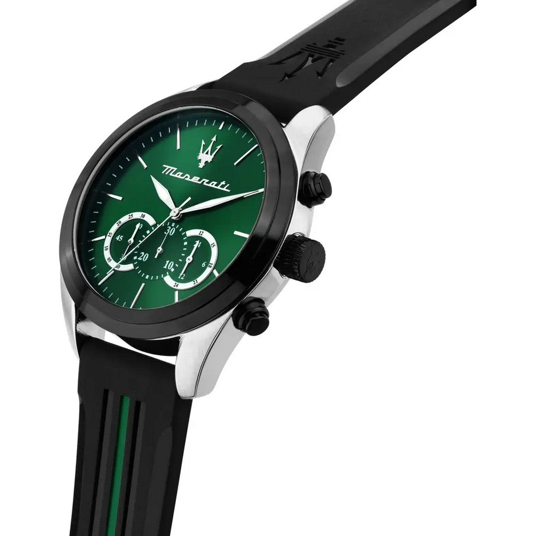 OROLOGIO MASERATI TRAGUARDO - R8871612043 - Genere: Uomo, Materiale e finitura cassa: Acciaio, Materiale sintetico, Misura cassa: 45.00, Spessore cassa: 12.40, Finitura cassa: Lucido, Satinato, Colore cassa: Silver, Vetro: Vetro minerale, Materiale cinturino: Plastica, Colore cinturino: Nero, Verde, Chiusura: Fibbia ardiglione, Movimento: Quarzo, Water resistant: 10 atm, Garanzia: Ufficiale 2 anni Maserati, Confezione: Originale Maserati