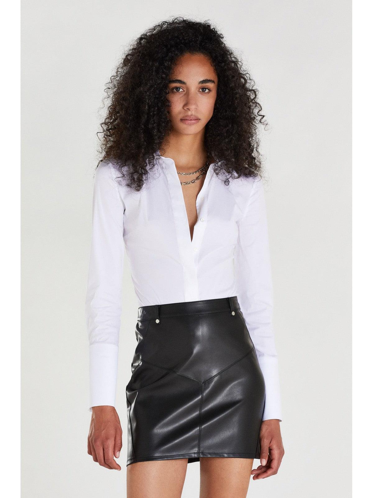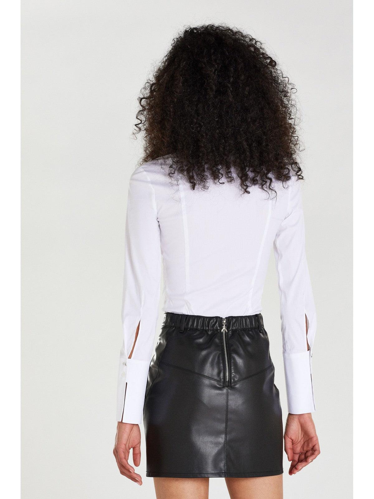 Camicia body Patrizia Pepe realizzata in popeline stretch di cotone. Collo a camicia e maniche lunghe con polsini alti con dettaglio Fly in metallo. Chiusura con bottoni coperti da patta.