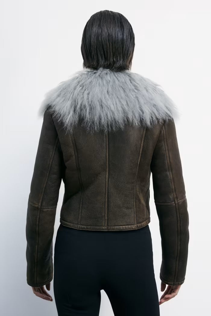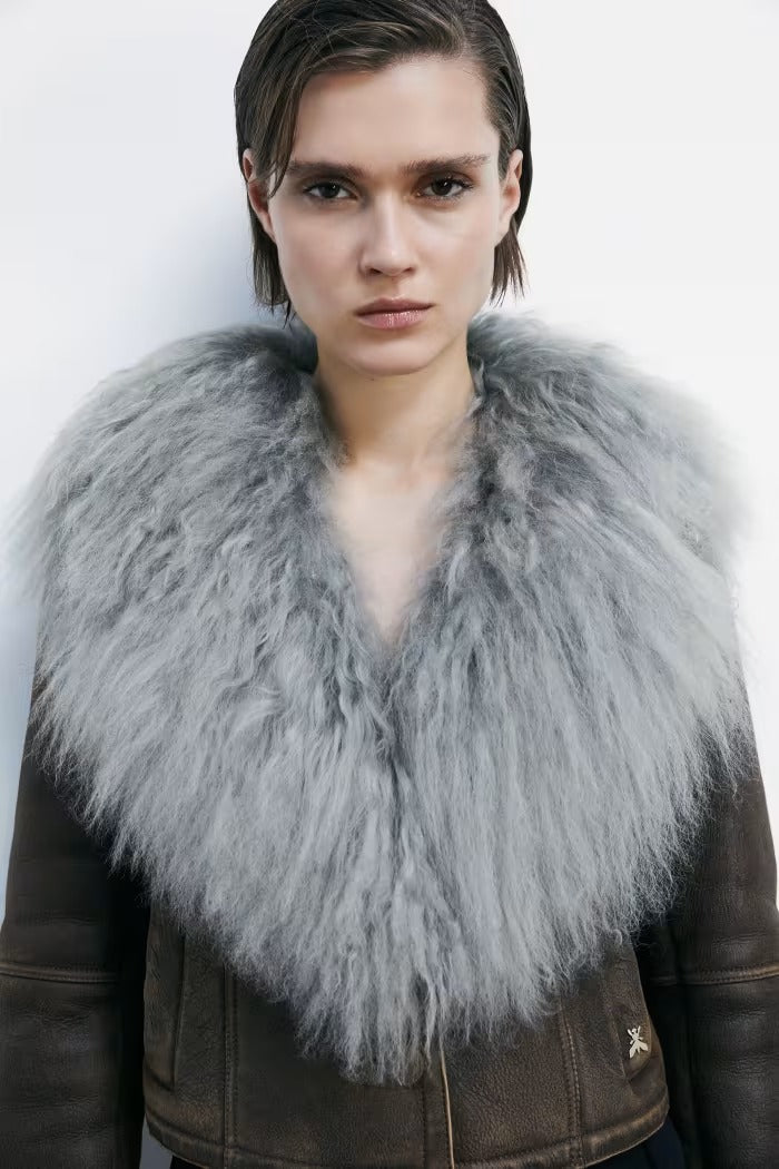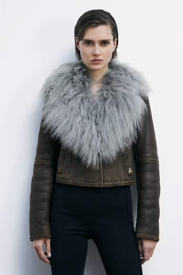 Giubbino PATRIZIA PEPE in montone dall'effetto nappato e definita dal rever aperto in pelliccia riccia e voluminosa. I dettagli artigianali ? cuciture con finitura used, lavorazione passapelo, bottone rivestito e label in pelle sul retro ? ne sottolineano l'esclusività.