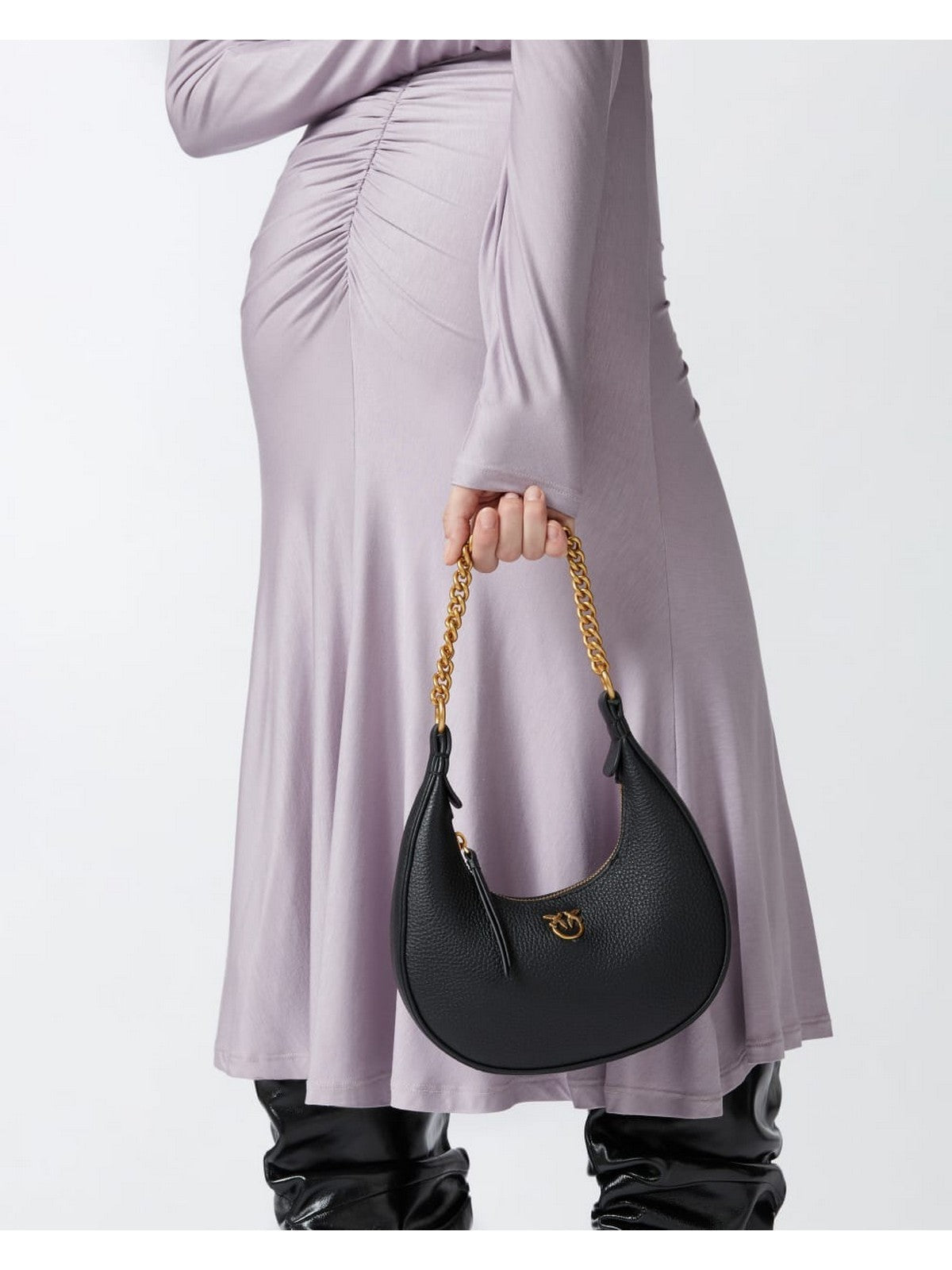 Borsa PINKO modello a spalla Mini Brioche Bag dalla caratteristica forma arrotondata realizzata in pregiata pelle bottalata