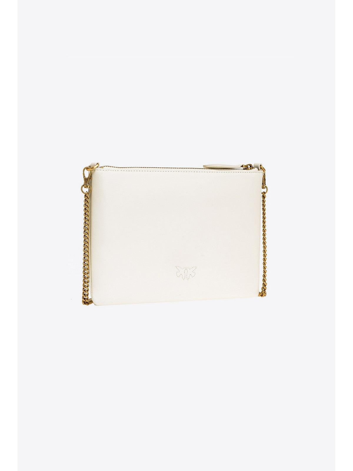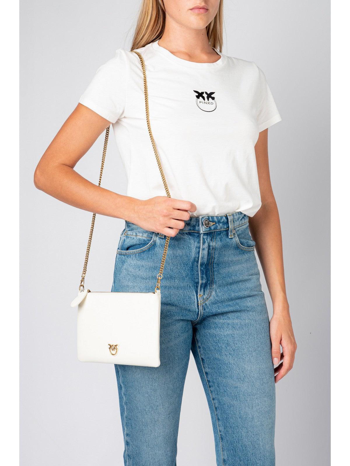 Borsa a tracolla PINKO flat in morbida pelle mano seta con placchetta Love Birds Diamond Cut. Interno foderato in polycotton. Chisura con zip. Tracolla rimovibile a catena sottile.