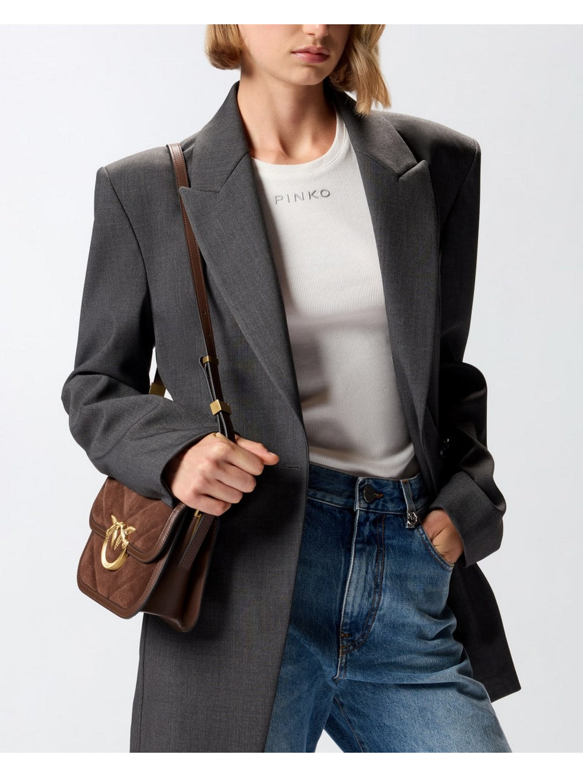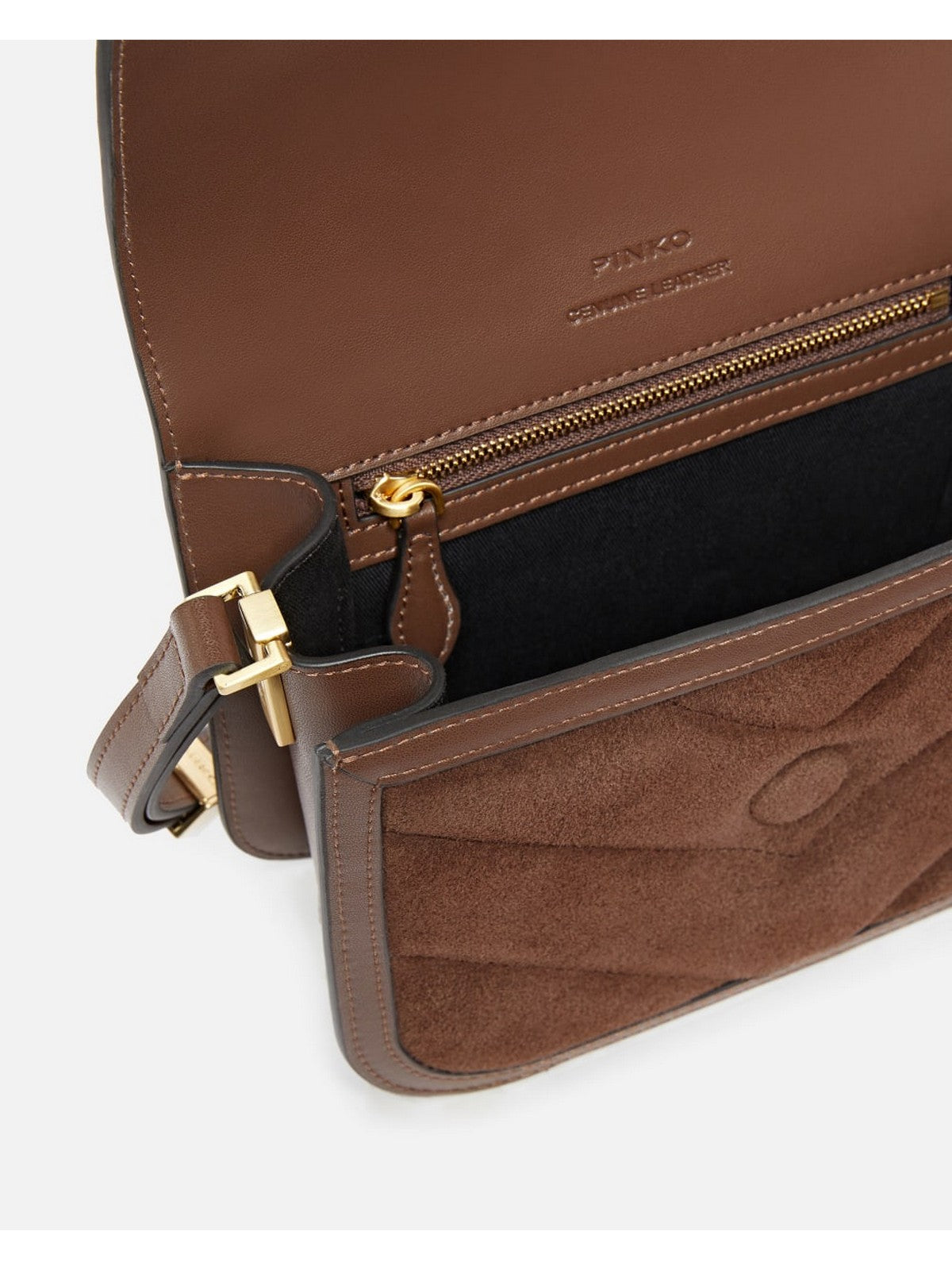 Borsa a spalla PINKO Mini Love Bag Box dalle piccole dimensioni in soffice pelle scamosciata con impunture.