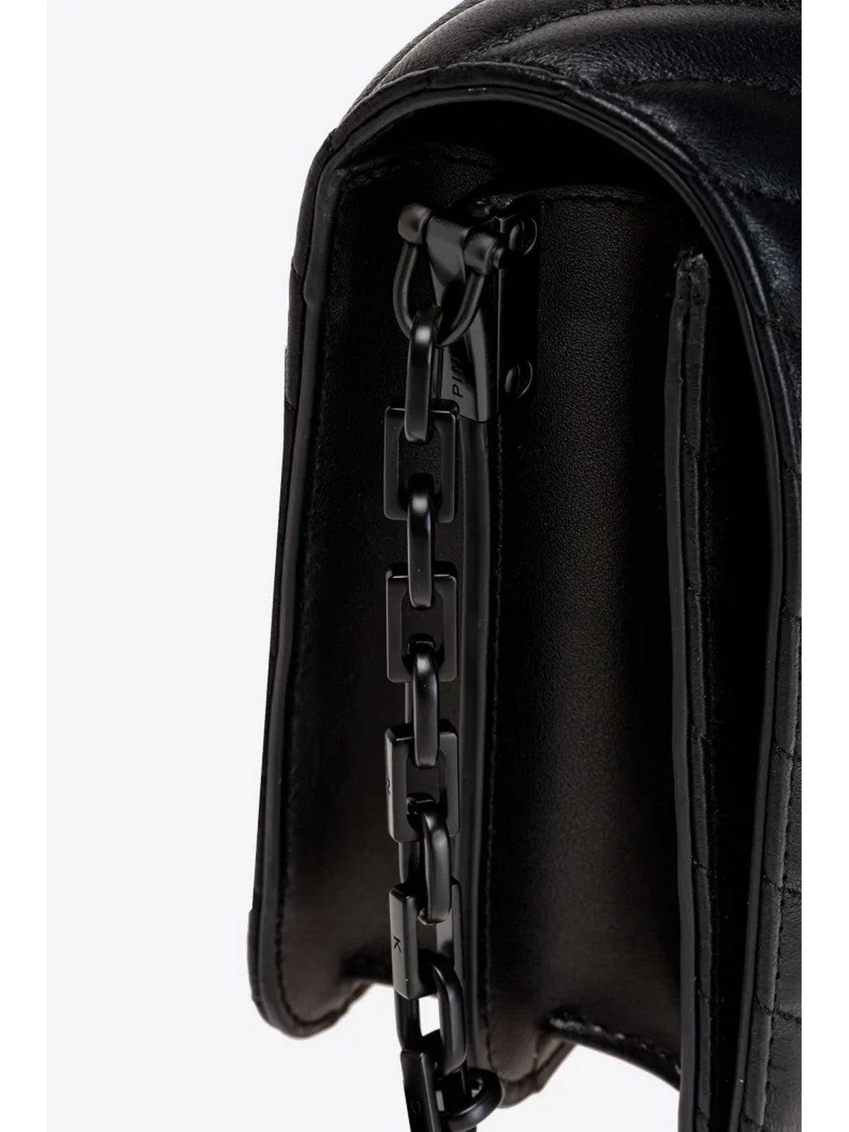 Mini Love Bag Click in nappa trapuntata con motivo chevron. La chiusura automatica nascosta è completata dall'iconica fibbia in metallo Love Birds Diamond Cut con effetto cut-out, galvanica in tono colore. L'interno è foderato in microfibra scamosciata e comprende tramezza chiusa con zip e tasca a parete in pelle. La tracolla combina la catena metallica squadrata al pratico spallaccio in pelle regolabile. Attiva la tua borsa PINKO: verifica l'autenticità del tuo prodotto e accedi all'esperienza personalizzata avvicinando il tuo smartphone al ricamo Love Birds che trovi sul retro della borsa!
