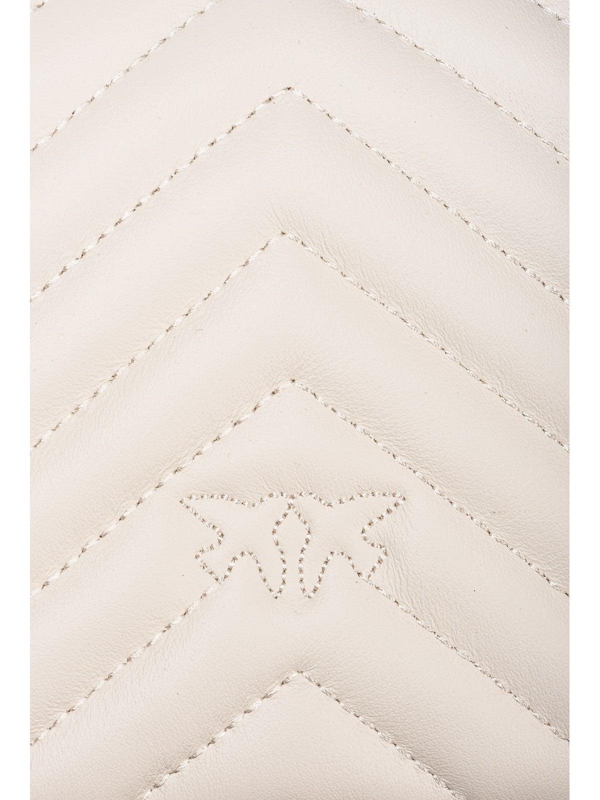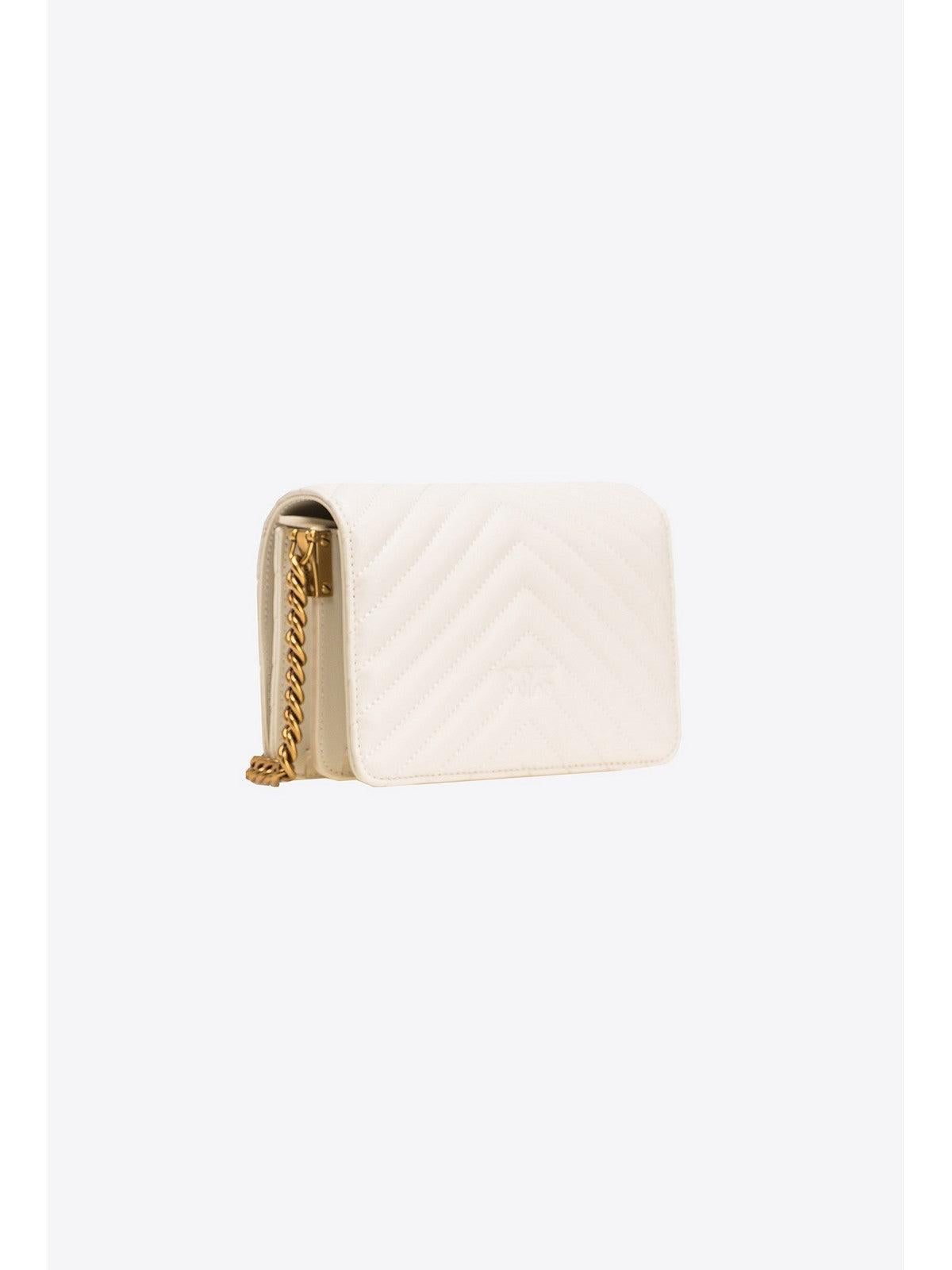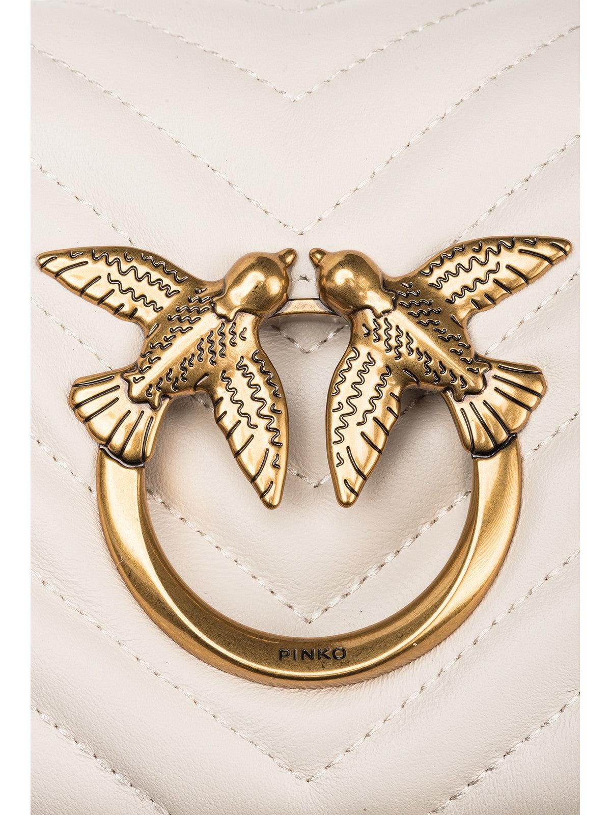 Borsa PINKO Mini Love Bag Click in nappa trapuntata con motivo chevron. Chiusura automatica nascosta, completata dall'iconica fibbia in metallo Love Birds Diamond Cut con effetto cut-out. L'interno è foderato in microfibra scamosciata, dotata di tre scomparti di cui uno con zip e tasca a parete in pelle. Tracolla con catena e spallaccio in pelle regolabile.