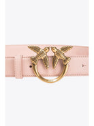 Cintura PINKO in morbida pelle mano seta con fibbia Love Birds Diamond Cut in metallo. Altezza 3 cm.