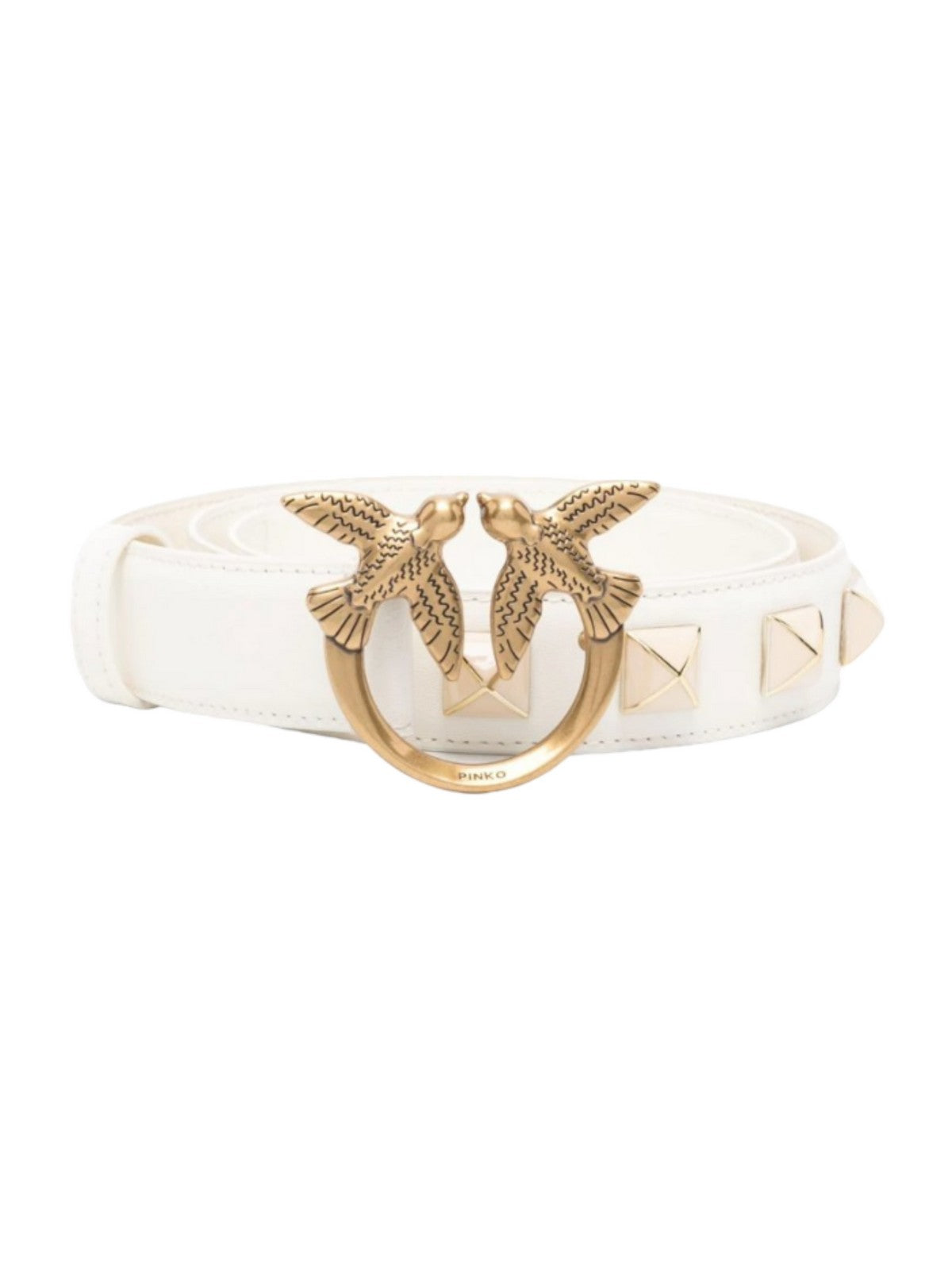 Cintura PINKO in pelle con borchie piramidali. Fibbia love birds.