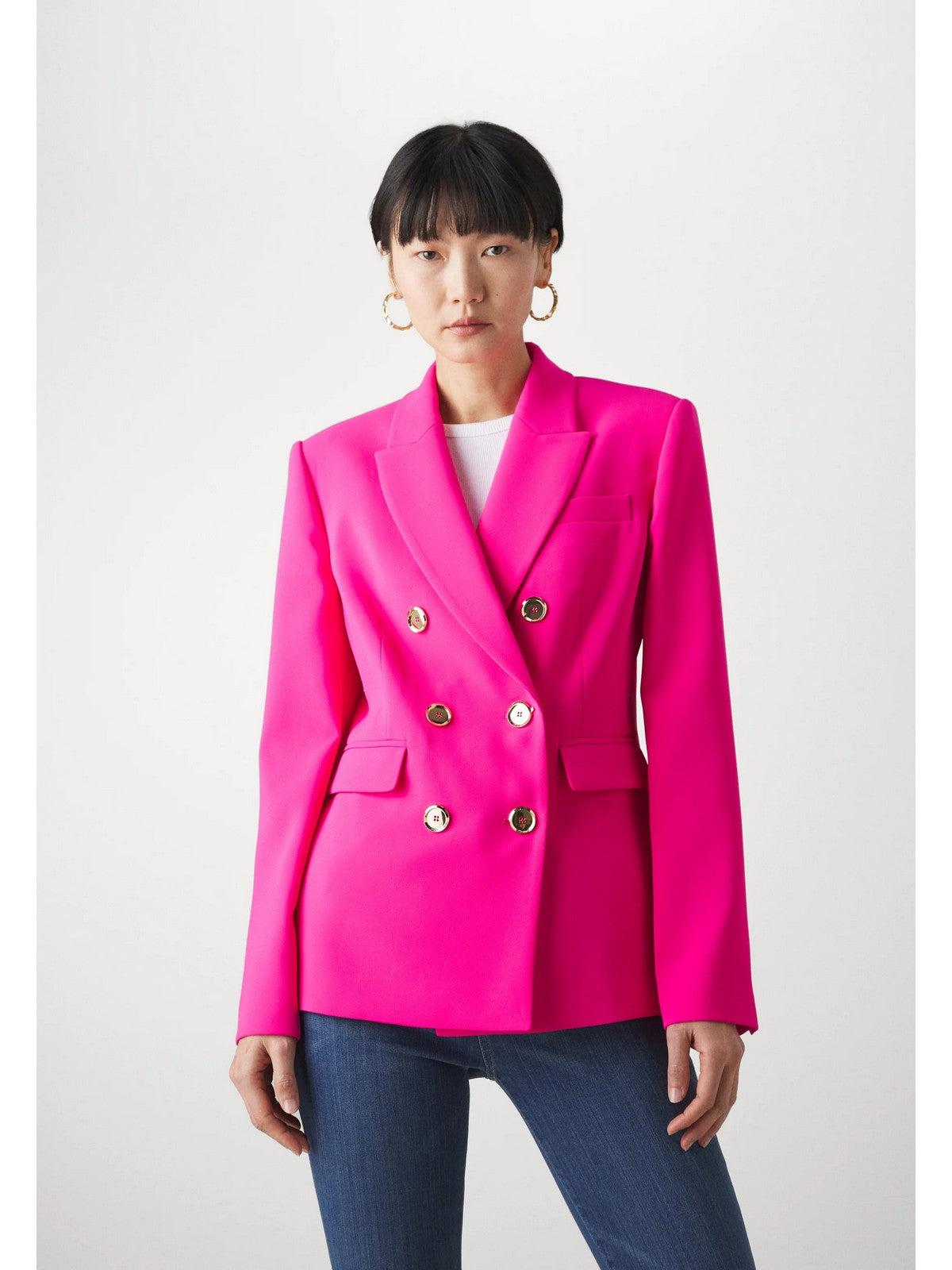 Blazer PINKO in tessuto crêpe di viscosa stretch. Taglio classico con collo a rever e maniche lunghe. Taschino a filetto e tasche con patta applicata sui fianchi. Foderata. Chiusura doppiopetto con bottoni in metallo.
