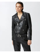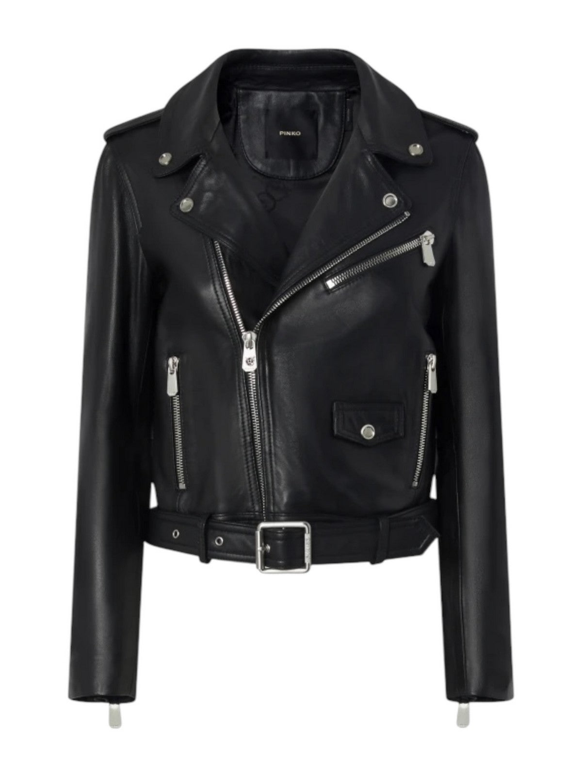 Giubbino PINKO biker, stile chiodo, realizzata in morbida nappa.