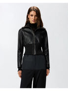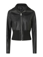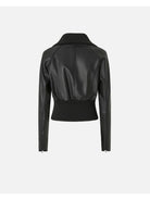 Giubbino corto PINKO dalla linea aderente e femminile, caratterizzato da corpo in morbida nappa abbinato a un maxi bordo inferiore in maglia lavorata a costine.
