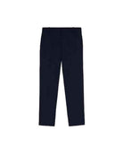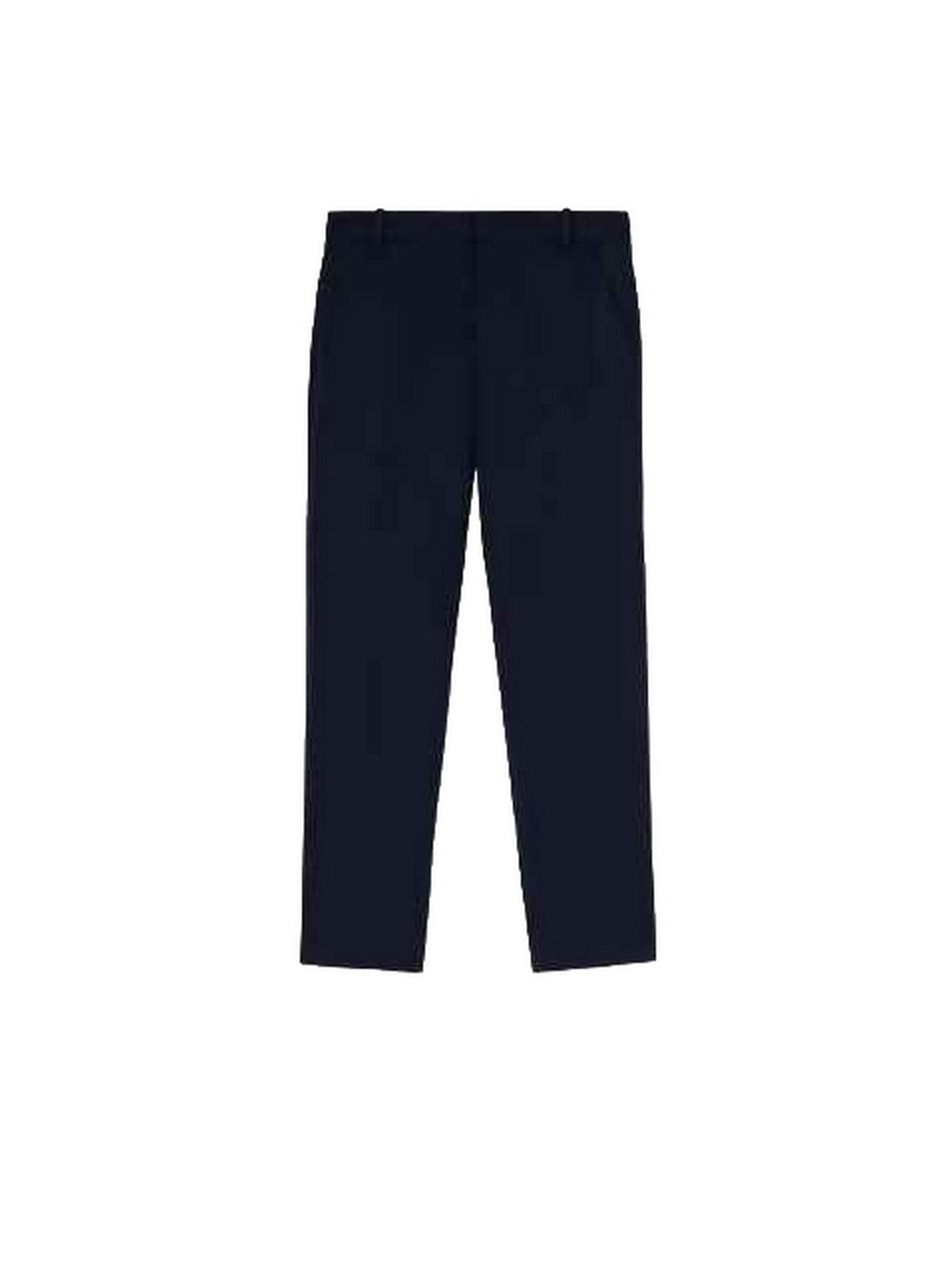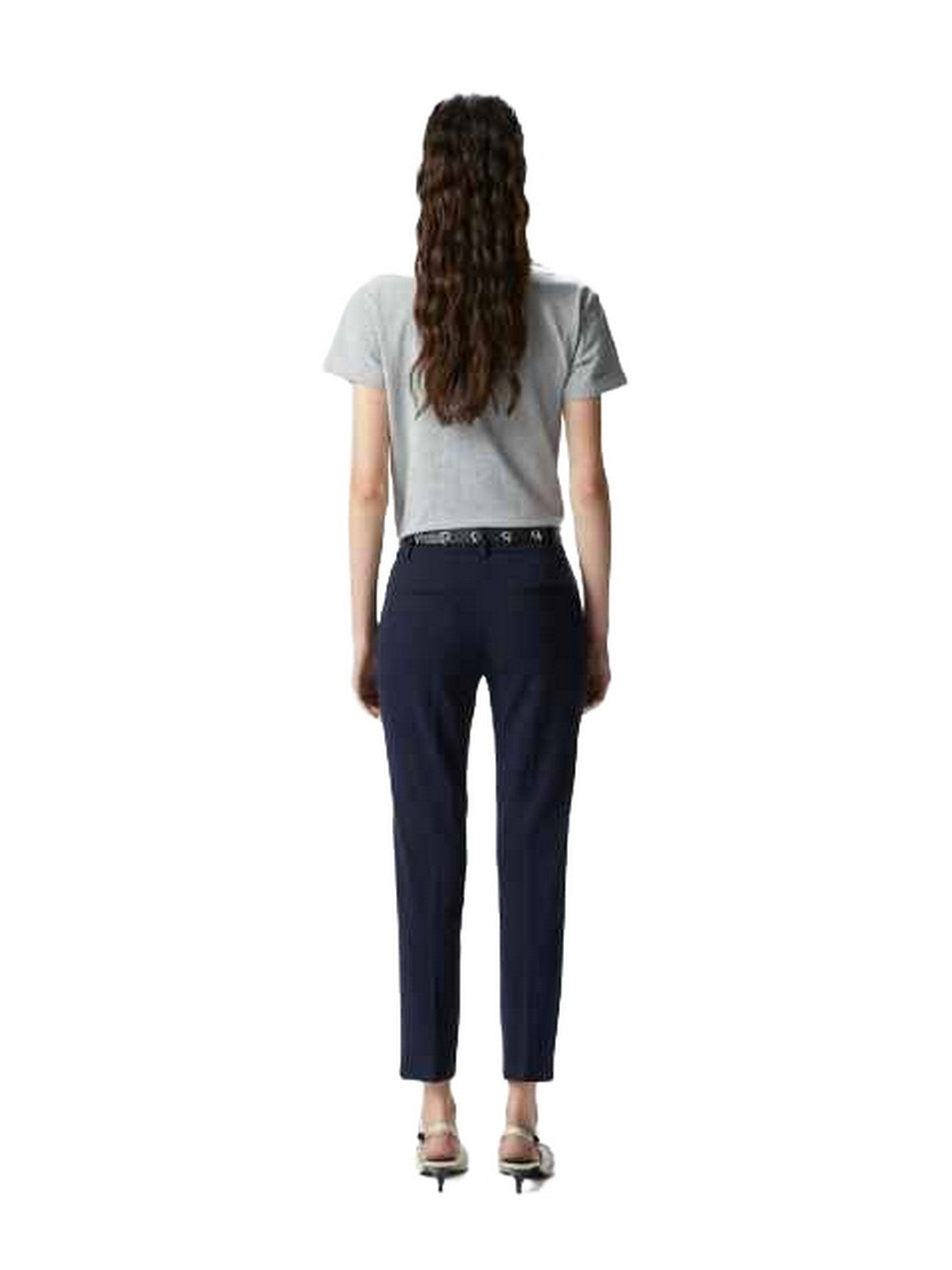Pantaloni eleganti dalla silhouette cigarette-fit in tessuto tecnico di viscosa stretch lavorato a punto stoffa. Vira regular, completata da passanti per cintura, e tasche alla francese sui fianchi, a filetto sul retro. La gamba dalla linea dritta e affusolata è completata da piega centrale sia davanti che sul retro. La chiusura con zip è completata da bottone in vita.