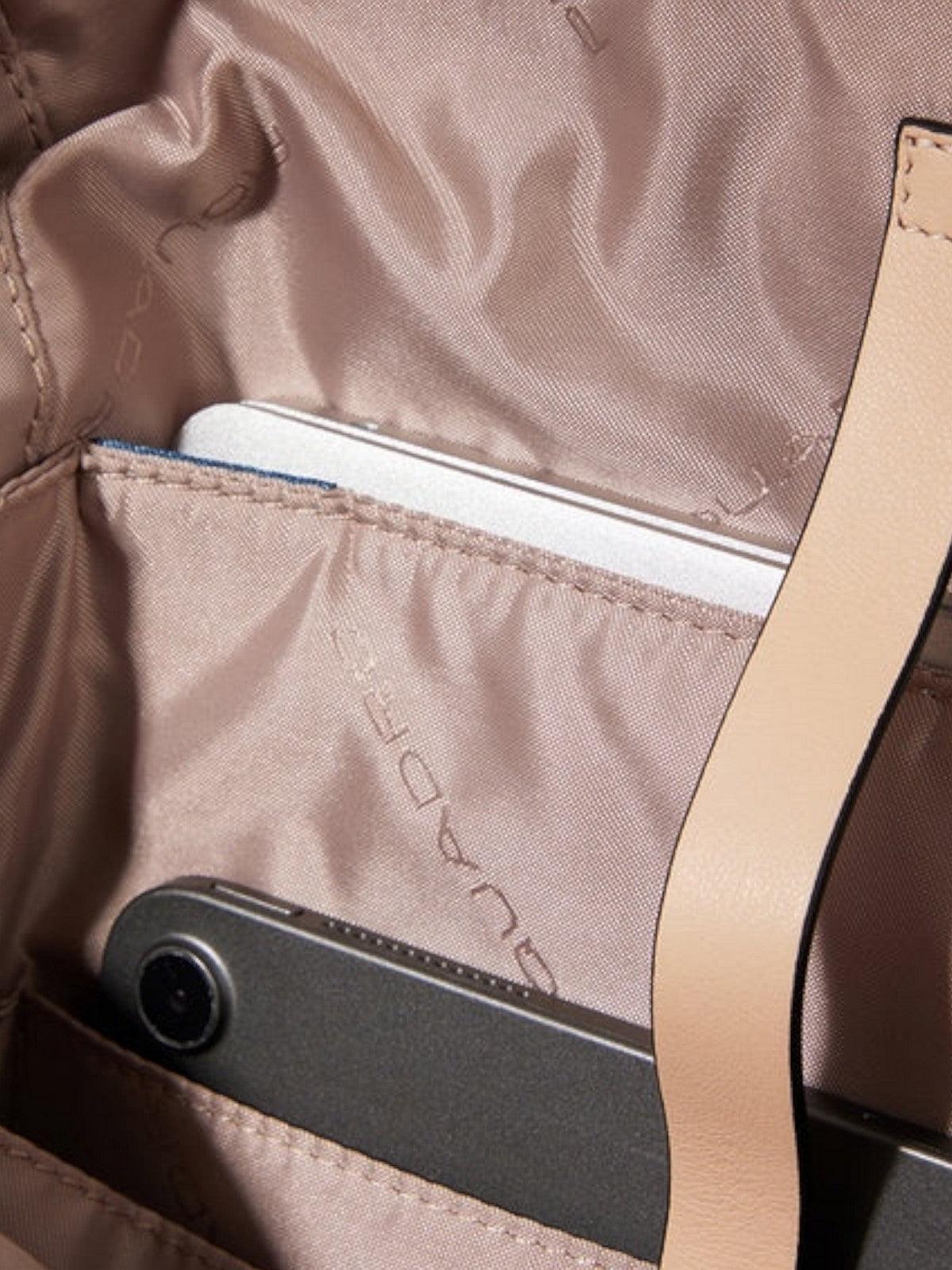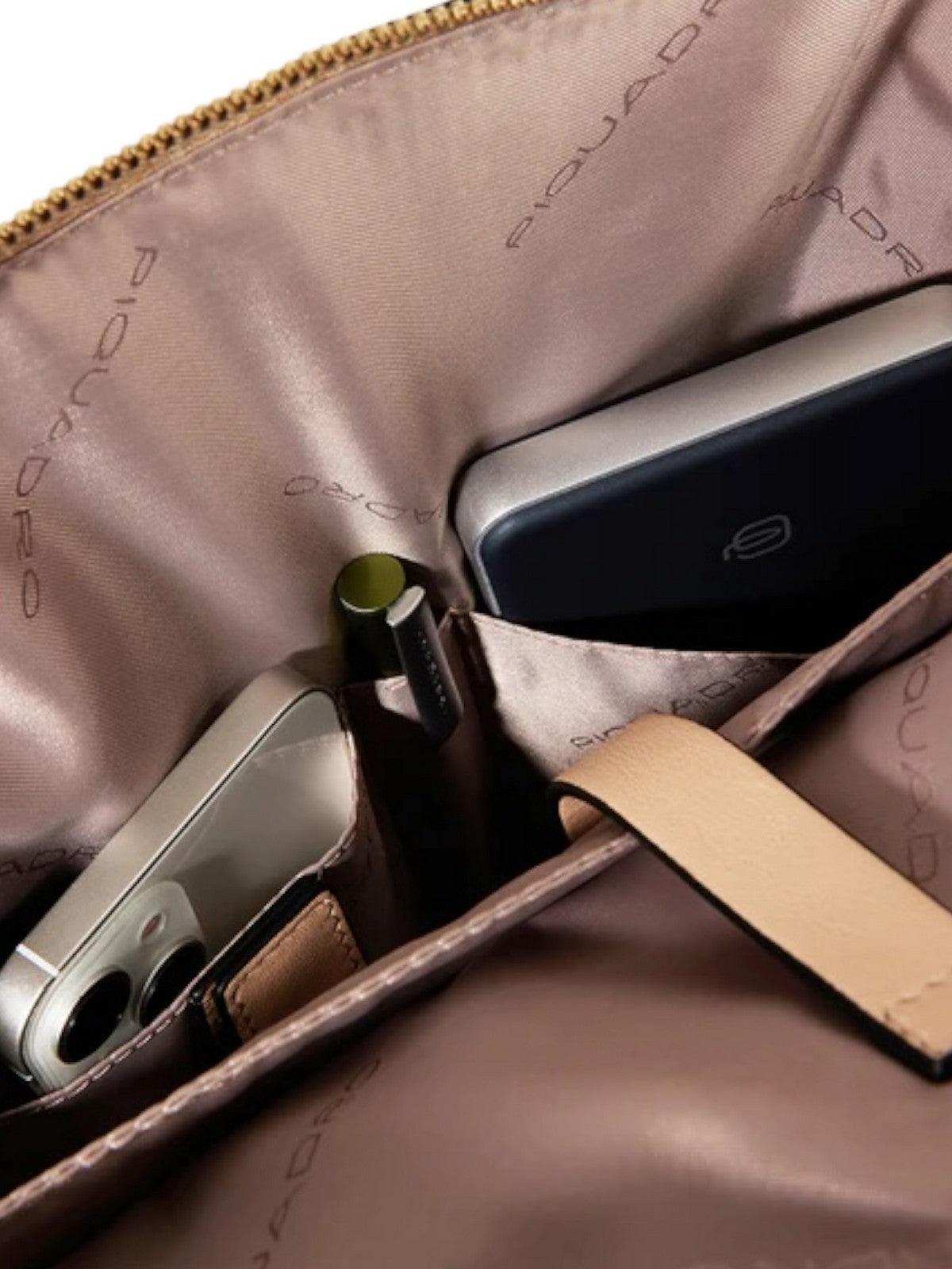 Zaino donna PIQUADRO porta computer e porta iPad, realizzato in pelle. Interno foderato con protezione antiurto. Chiusura con zip. Tasche frontali zippate. Logo in metallo sul fronte. Un manico e spallacci regolabili.