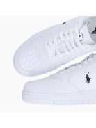 Sneakers POLO RALPH LAUREN tomaia pelle con logo pony ricamato sul lato a contrasto di colore. Applicazione in pelle con logo "Polo Ralph Lauren" inciso sulla linguetta. Scritta "Polo" incisa sul tallone. Fodera in spugna di cotone e rete. Punta arrotondata.
