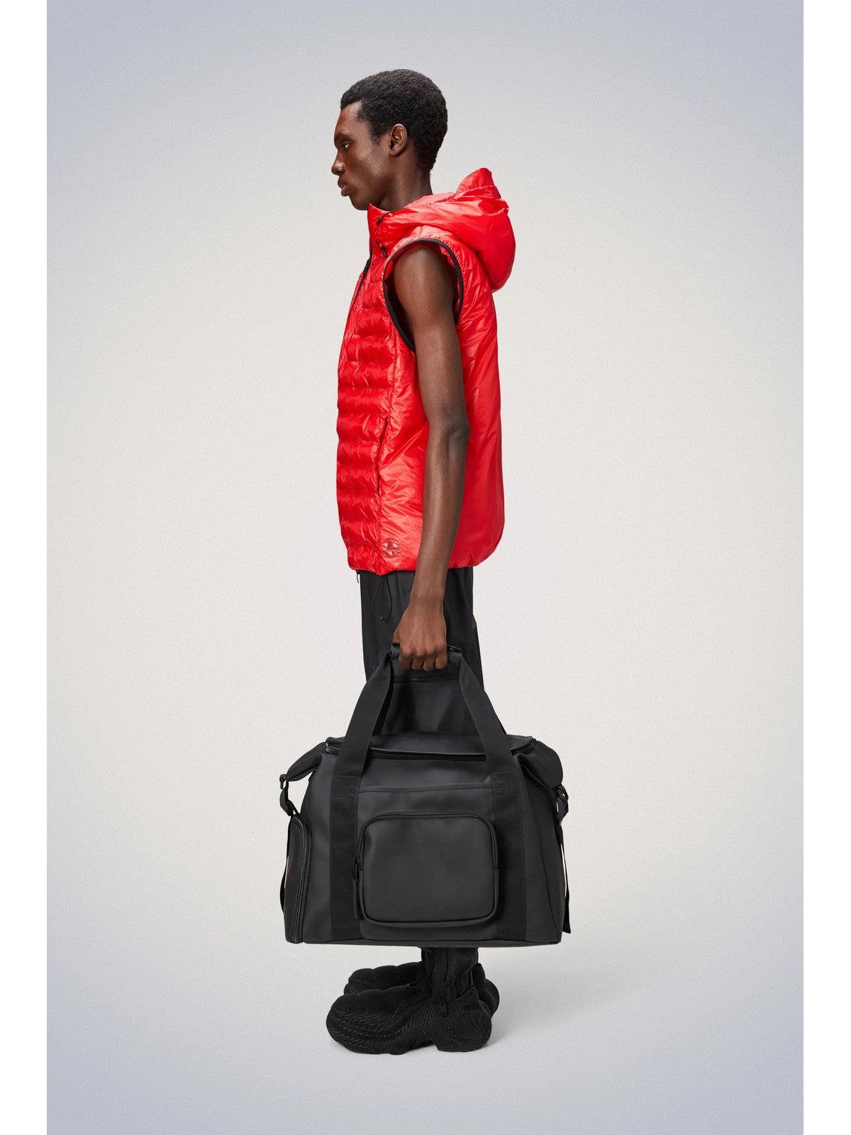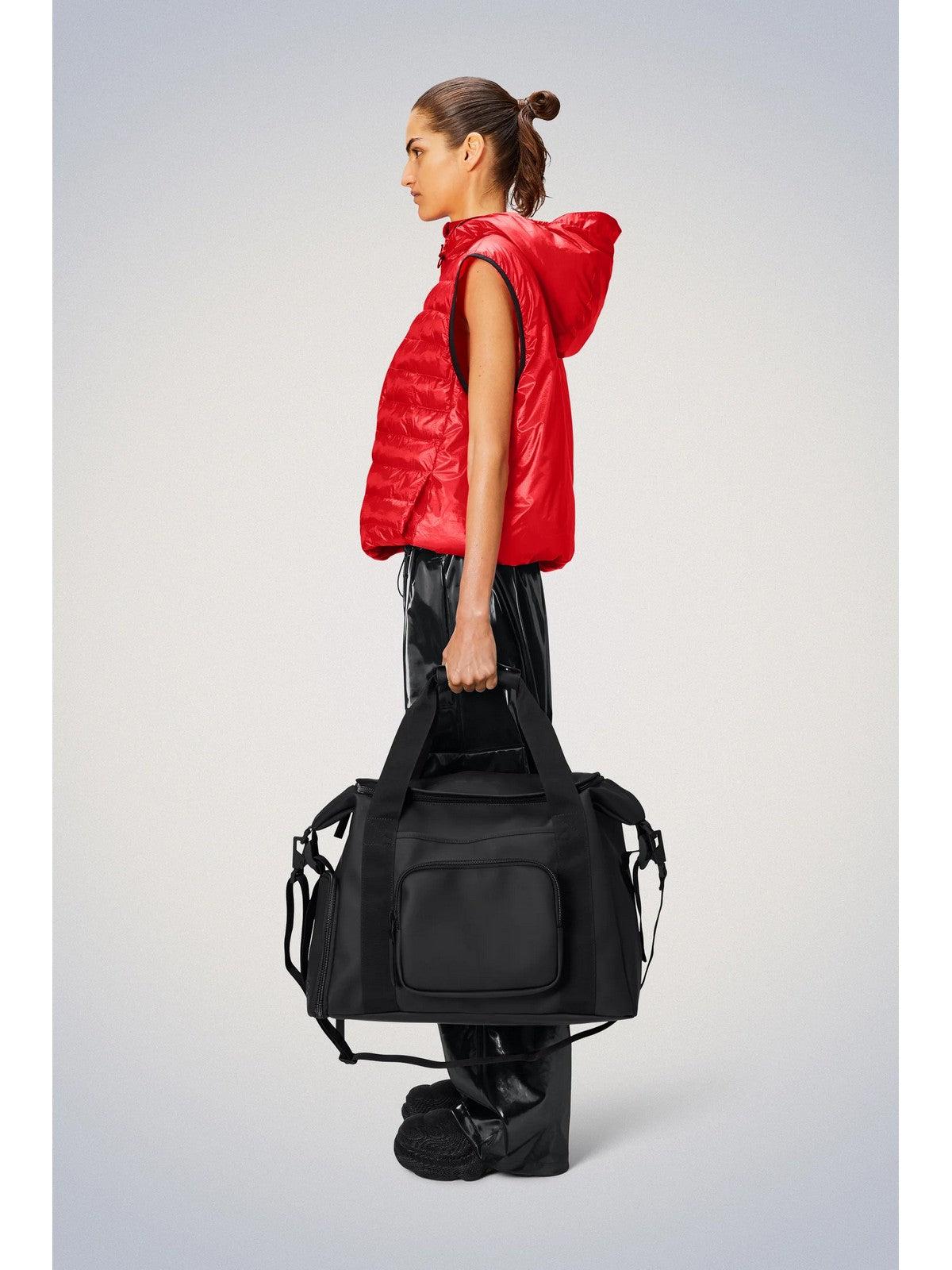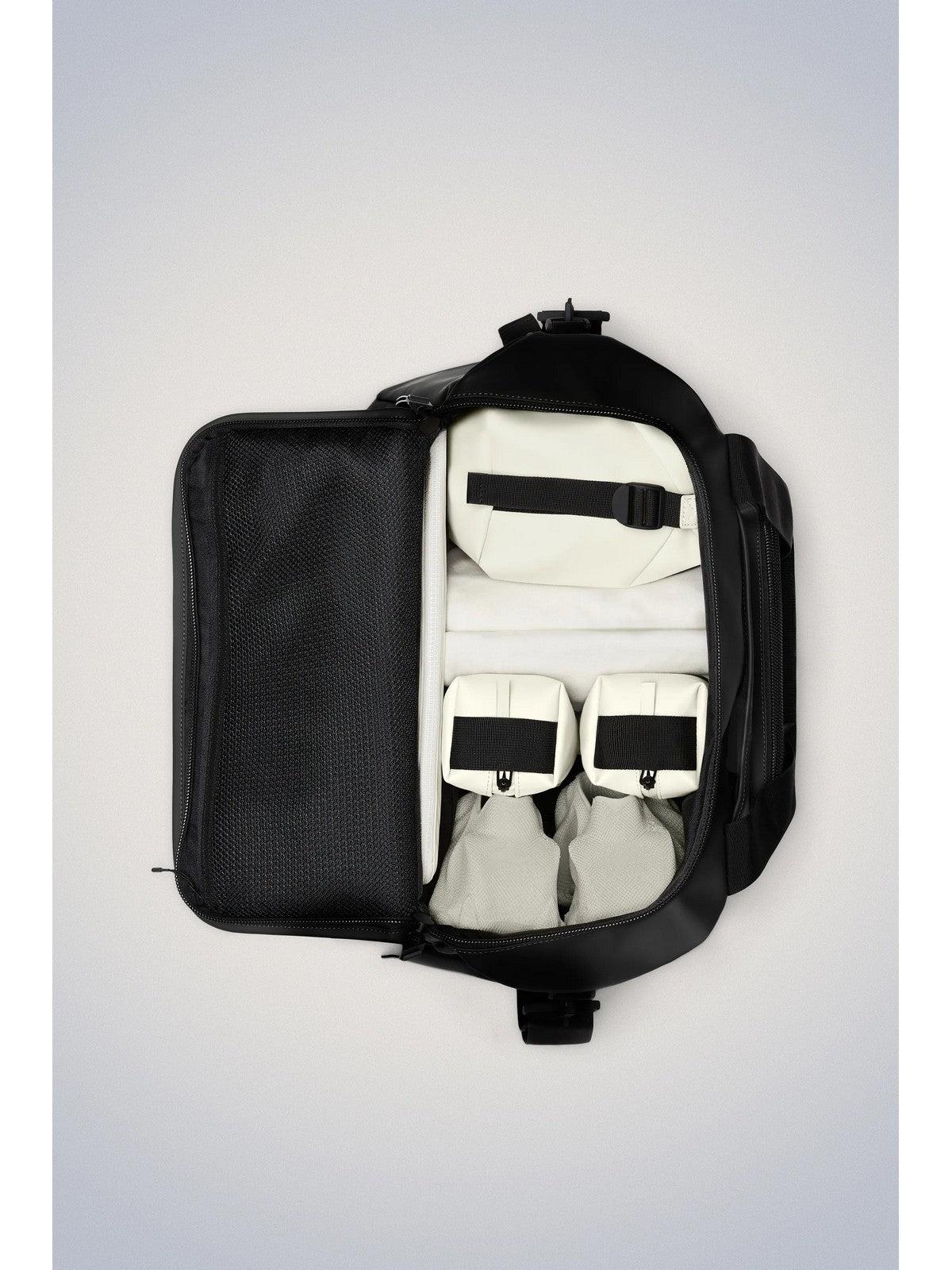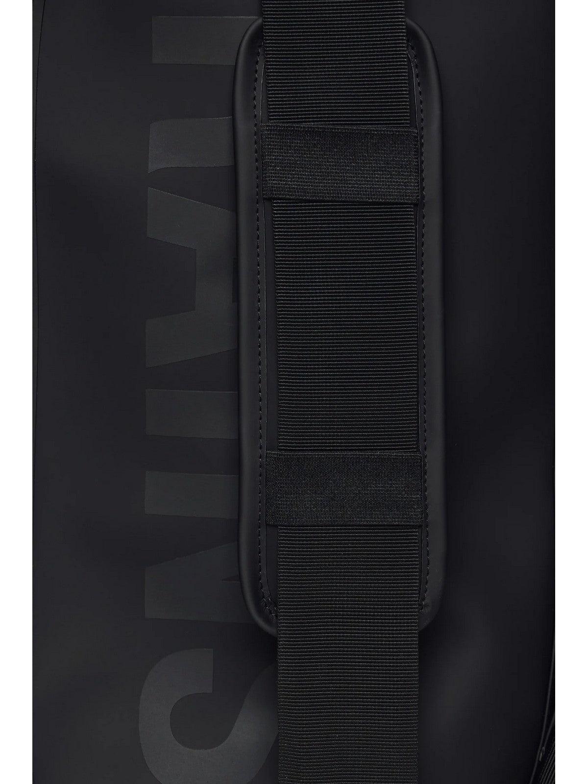 Borsa RAINS realizzata in tessuto PU impermeabile firmato Rains, progettata per essere robusto, duraturo e piacevole al tatto. Lo scomparto principale si apre tramite un comoda chiusura a forma di U con cerniera. All'interno è dotato di tasche in mesh con cerniera e di un divisorio imbottito per una facile organizzazione degli oggetti. Un nuovissimo scomparto interamente foderato si rivela utile per riporre un cambio di scarpe o wet kit. Per i viaggi più lunghi, la fascia applicata sul retro permette di infilarla facilmente sul manico telescopico del trolley, per un facile trasporto. Le cinghie di compressione mantengono il contenuto ben saldo. Tracolla regolabile e removibile.
