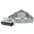 Caratteristiche; Quadrante analogico rotondo in argento spazzolato con numeri romani in argento. Finestrella della data in posizione ore 3. Lancetta dei secondi continua. Lunetta fissa in acciaio inossidabile con dettaglio numeri romani. Fondello in acciaio inossidabile. Cinturino in acciaio inossidabile con chiusura deployante a farfalla con doppio pulsante.