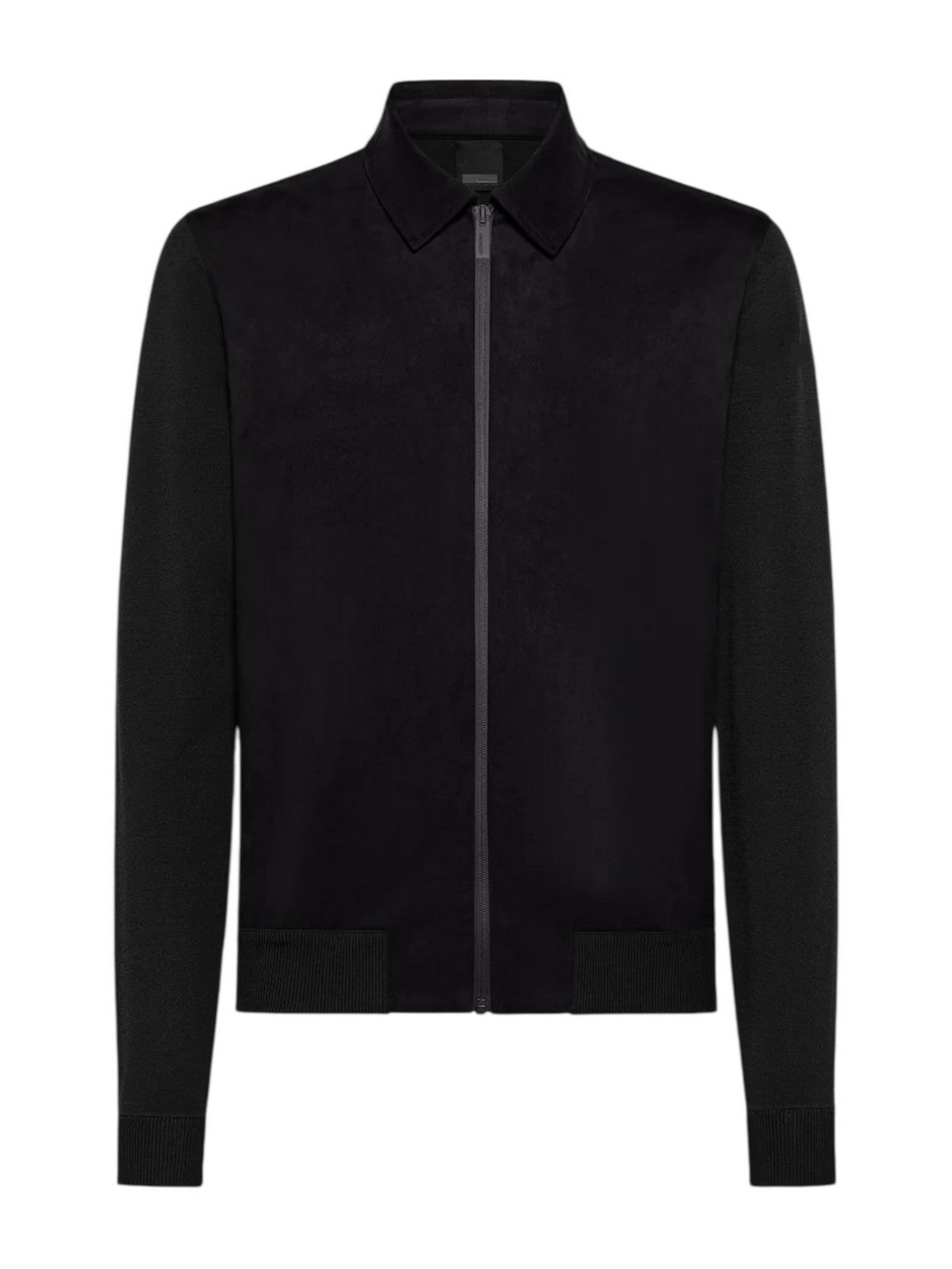 Cardigan uomo RRD, il fronte è realizzato in tessuto tecnico eco suede a effetto nabuk, maniche e dorso in maglina elasticizzata