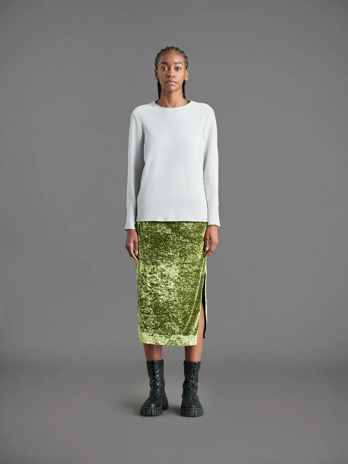 Maglione RRD realizzata in morbida ciniglia rasata, è un capo elastico e morbido, lavorazione a costine. Collo a giro e maniche lunghe. Fit relaxed