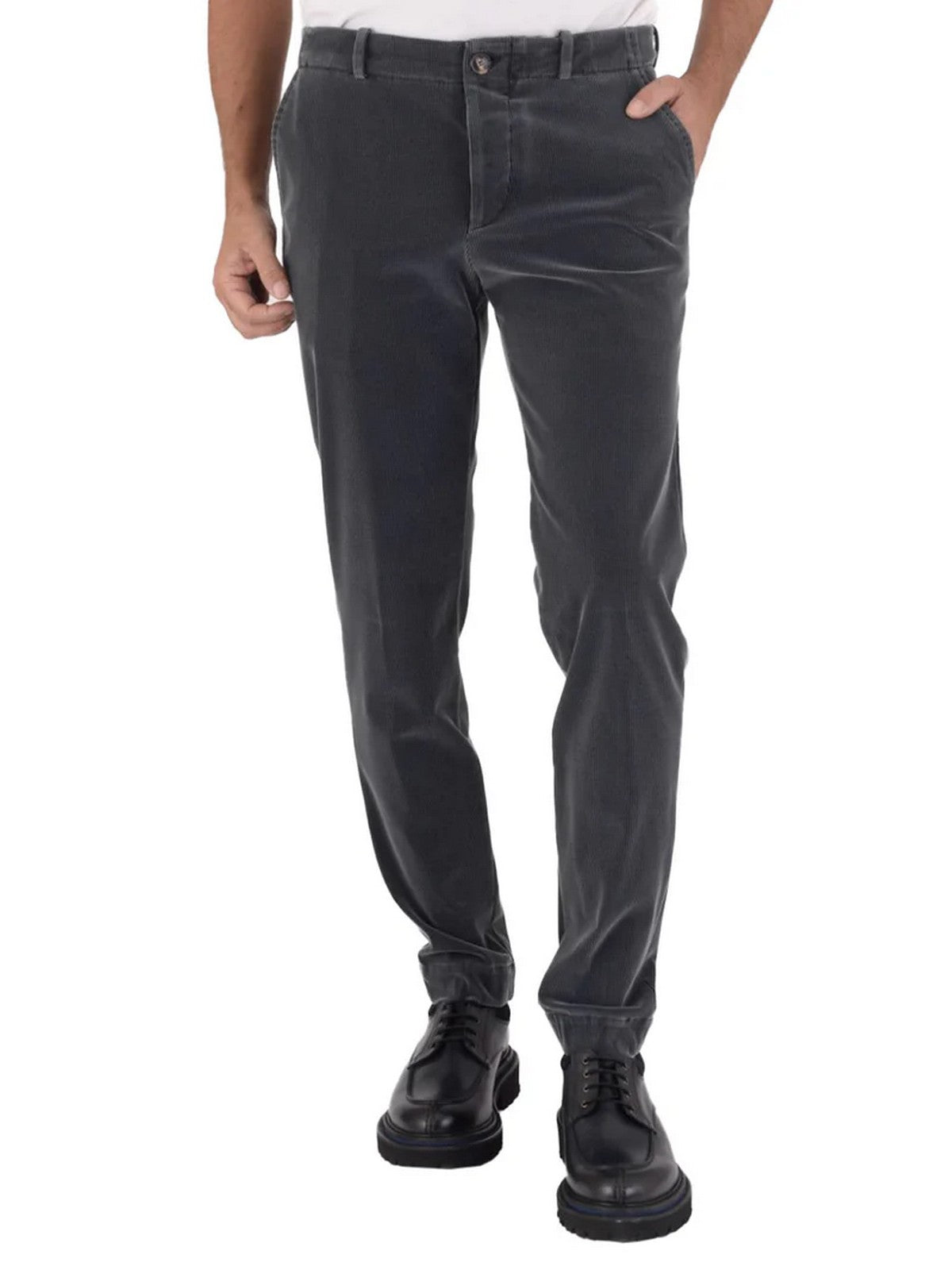 Pantalone RRD lavorazione floccata a effetto velluto millerighe dell'esclusivo tessuto stretch SURFLEX, colore grigio.